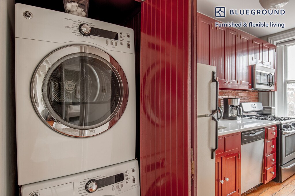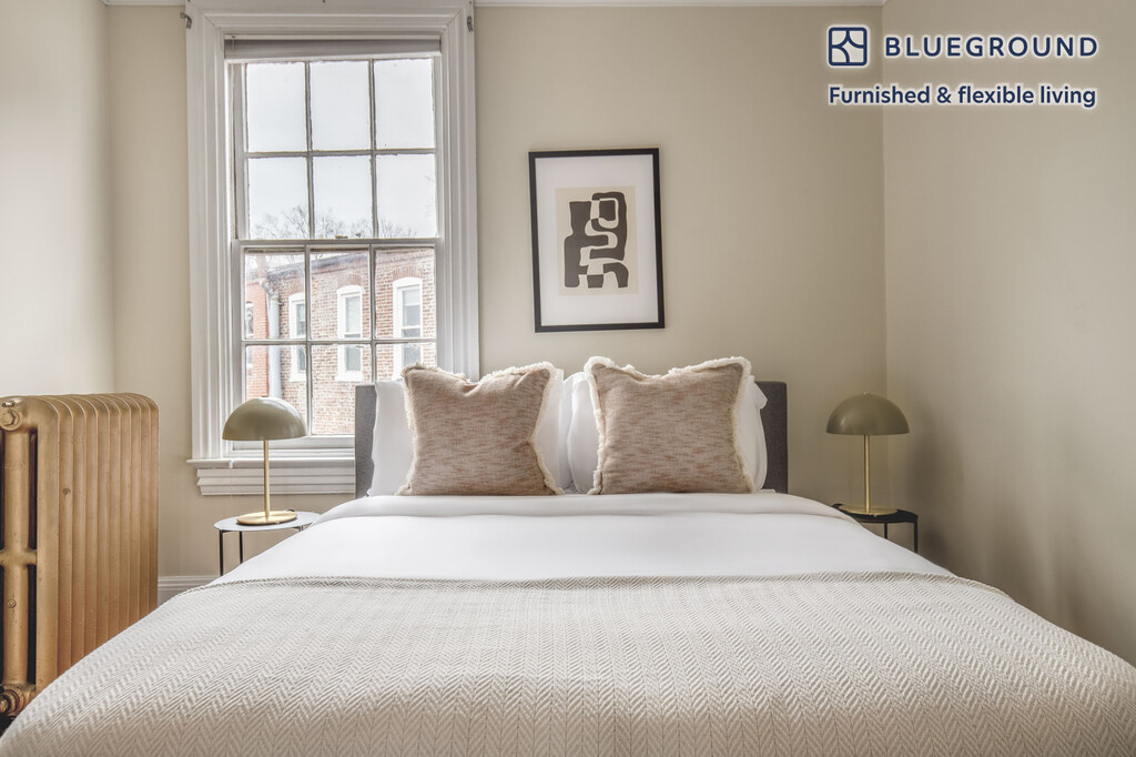 Feel at home wherever you choose to live with Blueground. You’ll love this cozy Logan Circle furnished one bedroom apartment with its modern decor, fully equipped kitchen, and cheery living room. Ideally located, you’re close to all the best that Washington, D.C. has to offer! (ID #WDC23) The advertised rate of $3,270/month is the lowest available price, based on a 12 month(s) stay with a move-in date of March 2, 2026. Rates vary depending on the duration of stay, season, and other parameters. For exact pricing and additional pricing components, please visit our website and enter your desired move-in and move-out dates. The rate is applicable when billed upfront; it can be higher if billed in multiple payments. Brokers are welcome to reach out. Were you looking for an unfurnished lease? Try Blueground instead and upgrade from unfurnished to furnished living: - Furnished at rates comparable to unfurnished - No setup or furniture costs - save thousands - Move-in ready - save time, just bring your suitcase Designed with you in mind Thoughtfully designed with bespoke finishes, modern furnishings, and a fully equipped kitchen, you’ll enjoy that “I’m home” feeling with this Blueground apartment. Whether you’re lounging in your pretty living room streaming the latest and greatest entertainment on the smart TV or premium wireless speaker, or getting some well-earned rest on the superior quality mattress with luxury linens, you’ll fall in love with everything this Logan Circle apartment has to offer. This apartment also offers in-apartment laundry. Sleeping arrangements Queen Bed, 63in/160cm Amenities Building amenities unique to this one bedroom apartment include an on-site: - Dryer - Washing machine - Pets allowed Arrival and ongoing support The entire apartment is yours to enjoy! Throughout your stay, you’ll have access to our Client Experience team through the Blueground App. You can schedule additional cleanings, submit maintenance requests, and view our neighborhood recommendations with just a few taps. We’ll share all details upon confirmation of your stay. Ideally Located This fully furnished apartment is located near Logan Circle, one of DC's trendiest neighborhoods. Thanks to its central location, many of DC's most popular areas are a 15 minute walk away: explore Dupont Circle, head downtown and see the sights or pop around the corner and enjoy a meal at one of the many acclaimed restaurants and bars on 14th Street. Stay in Logan Circle and enjoy a contemporary play at the Studio Theater and take a long stroll by the restored Victorian homes throughout the neighborhood. The neighborhood is served by the McPherson Square and Mount Vernon Metro Stations. Other things to note Building amenities may have an extra cost. This Blueground apartment has flexible lease options, allowing you to book it for one month, a year, or more. Pets are welcome, though weight limits and breed restrictions apply and may incur fees. Please keep in mind that this is a walk up building. We take great pride in ensuring every photo displayed is shot in our own units with our actual furnishings. That said, we regularly refresh our decor and furniture arrangement, which may differ from what’s pictured. [SI]
