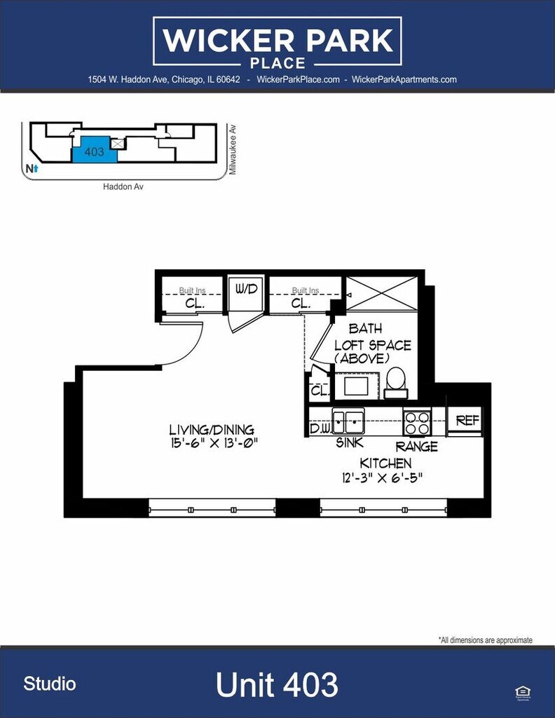 Wicker Park Place- Steps away from the Blue Line at the convergence of Ashland, Division & Milwaukee. Amazing Studio apartment featuring 12 foot ceilings and oversize windows. Sleek modern design aesthetics, real hardwood floors, High speed internet included. Huge shared roof deck, secured entry & package area, bike storage and storage lockers for all units make this apartment extraordinary. Now 50% rented, don't miss your chance.