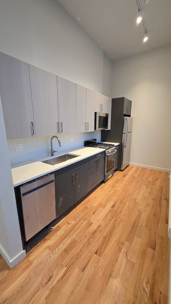 Wicker Park Place- Steps away from the Blue Line at the convergence of Ashland, Division & Milwaukee. Amazing One-bedroom apartment featuring 12 foot ceilings and oversize windows. Sleek modern design aesthetics, real hardwood floors, High speed internet included. Huge shared roof deck, secured entry & package area, bike storage and storage lockers for all units make this apartment extraordinary. Now 50% rented, don't miss your chance. Video Tour Here: