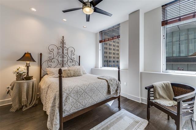This George Dahl designed Mid-Century Modern building built in 1957 for Dallas Federal Savings was converted to condos in 2002 - the first condo project in the CBD. Enjoy City Views from 4 large windows with views of the Thompson Hotel and other neighboring buildings. Large same floor storage unit with quick access nearby. Since 2021 the $460million+ National Residences and Thompson Hotel have been located across Akard in the restored First National Bank with all the marvelous restaurant offering include the Michelin recognized Monarch. 1505 Amenities: 24 HR Concierge-Valet for Residents and up to 5 Guests-no tipping or charge. You will appreciate having the concierge or valet open the door to the lobby to access the elevator all while cameras are recoding you after you enter the Valet gate 24-7! Amenity floor B-1 caterer's kitchen, wine cellar, party area, piano, darts, pool table, TV. Amenity floor B-2 new Media Room seats 15 and new state of the art Fitness Center with Gym Room and Bike storage. Fifth Floor Resident-Outdoor retreat-Pool, 3 cooking pavilions with gas grills, private dog run, sitting areas. Walk to Flagship Neiman Marcus, Forty-Five Ten, restaurants, hotels, Arts District, AT&T Discovery District with 9 story Video Wall. Dart Akard Station across the street to DFW in 50 minutes, Love Field in 30 minutes, NorthPark far faster than you can drive and park, etc. The ease of a contemporary Lifestyle!