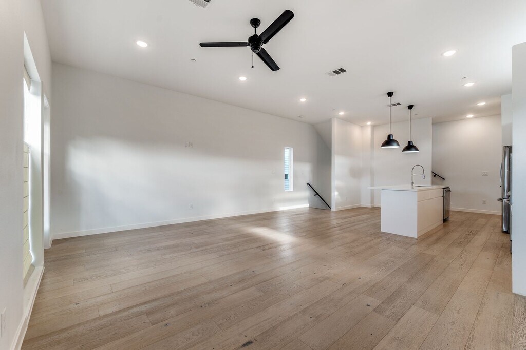 This stylish, like-new condo at 1505 N Garrett Avenue #105 offers a modern lifestyle in a prime Dallas location. Situated near Downtown, Lower Greenville, and White Rock Lake. This condo combines contemporary design with functional living spaces. This condo is larger than the attached condos in this building with its own driveway and a private fenced grass patio on first floor, perfect for pets. One pet, 30# or less. Pets on a case by case basis, if approved there is a $250 Deposit, $250 on time non-refundable fee, and a monthly $35 pet fee. Water, sewer, and trash are included in rent. Property Highlights • Open Concept Living: The main level features a spacious living room and a kitchen designed for entertaining, featuring a gas range, quartz countertops, crisp white cabinetry, and a central well lit island. Second Floor Balcony over looking downtown Dallas. • Modern Finishes: The home is filled with natural light and features wide-plank light wood flooring; sleek lighting; and stainless steel appliances such as Refrigerator, Built in Microwave, Gas Range, Dishwasher, and Disposal. • Dual Primary Suites: Both bedrooms are located on the third level and include bathrooms and walk-in closets. The primary suite features a spa-like bath with dual sinks and a walk-in shower. The laundry area is located on the same level as the bedrooms. • Convenience: The unit includes a 2-car attached garage and separate floor level entrance. Walk up Entrance is a gated entrance with security access lock.