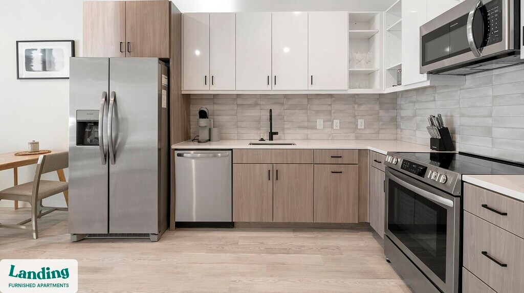 Landing offers flexible lease terms from weeks to months. Please always visit our website or contact us for the latest pricing & availability. Stay longer, save more: 6-Month Minimum base rent: starts at $2168/mo 12-Month Minimum base rent: starts at $2049/mo Landing offers flexible leases across a network of over 35,000 fully-furnished apartments throughout 375+ cities so you can rent on your terms, practically anywhere, and avoid the hassle of paying deposits or application fees. Visit to learn about all the benefits of a Landing membership, see our competitive up-to-date pricing, explore available apartments, take virtual tours, and make reservations online without jumping through traditional rental hoops. Landing's apartments at 1510 Belleville are designed for comfortable, easy living, with the ability to stay as long as you like. Experience living with Landing Every apartment is outfitted with all the modern essentials including: custom-designed furnishings, a fully-equipped kitchen with deluxe stainless steel appliances, a gourmet coffee maker, premium linens, Smart TVs, and incredibly fast, reliable internet for working from home. When you live with Landing, you'll enjoy a hassle-free experience with the added benefit of 24/7 access to our dedicated member experience team. Some of the nitty-gritty: a background check and proof of income are required; we're completely smoke-free; bundled utility packages and pricing vary based on length of stay; pet-friendly options available; listed price reflects a 12-month minimum stay.