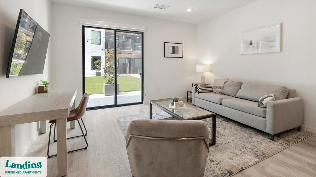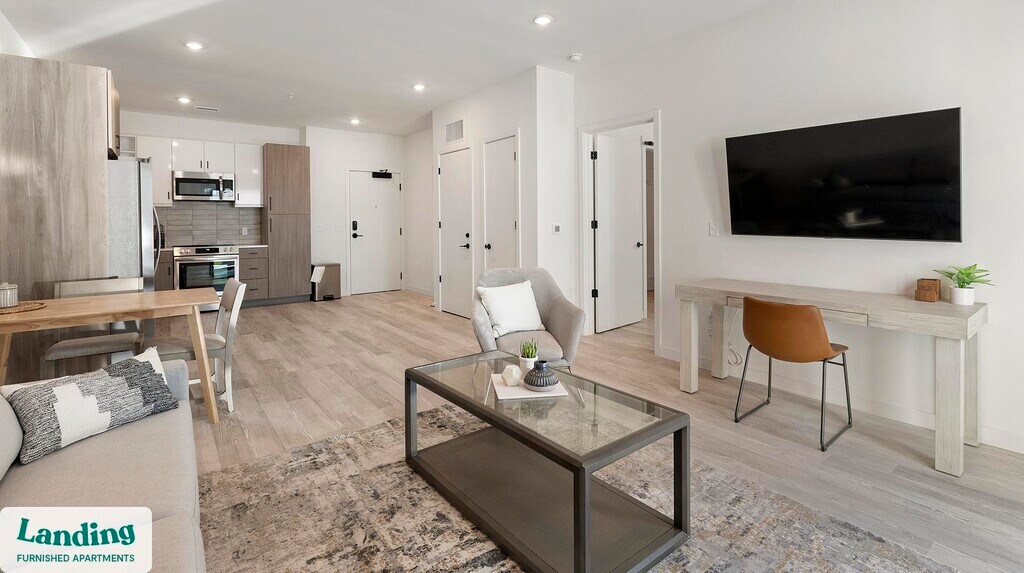Landing offers flexible lease terms from weeks to months. Please always visit our website or contact us for the latest pricing & availability. Stay longer, save more: 6-Month Minimum base rent: starts at $2599/mo 12-Month Minimum base rent: starts at $2277/mo Landing offers flexible leases across a network of over 35,000 fully-furnished apartments throughout 375+ cities so you can rent on your terms, practically anywhere, and avoid the hassle of paying deposits or application fees. Visit to learn about all the benefits of a Landing membership, see our competitive up-to-date pricing, explore available apartments, take virtual tours, and make reservations online without jumping through traditional rental hoops. Landing's apartments at 1510 Belleville are designed for comfortable, easy living, with the ability to stay as long as you like. Experience living with Landing Every apartment is outfitted with all the modern essentials including: custom-designed furnishings, a fully-equipped kitchen with deluxe stainless steel appliances, a gourmet coffee maker, premium linens, Smart TVs, and incredibly fast, reliable internet for working from home. When you live with Landing, you'll enjoy a hassle-free experience with the added benefit of 24/7 access to our dedicated member experience team. Some of the nitty-gritty: a background check and proof of income are required; we're completely smoke-free; bundled utility packages and pricing vary based on length of stay; pet-friendly options available; listed price reflects a 12-month minimum stay.