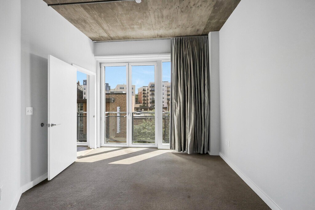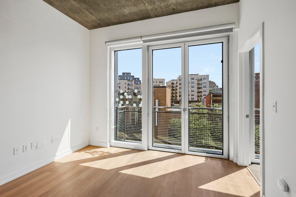 Elevated urban living awaits in this move-in ready 1BR + Den / 1BA residence at the coveted Metropole, where modern luxury meets industrial elegance. Positioned on the fourth floor overlooking P Street NW, the home is bathed in natural light through dramatic floor-to-ceiling windows that open to dual Juliet balconies spanning both the living room and bedroom, creating a seamless connection to the vibrant cityscape. Inside, exposed concrete ceilings and architectural piping blend effortlessly with sleek custom cabinetry, rich hardwood flooring, and freshly refreshed interiors, while new carpeting in the bedroom adds warmth and comfort. The gourmet kitchen, appointed with Bosch appliances, gas range, and an eat-in island, anchors the open living space, ideal for both quiet evenings and stylish entertaining. A spacious walk-in closet, spa-inspired bath, in-unit washer/dryer, and versatile den complete this thoughtfully designed home. Residents enjoy the full-service lifestyle of the Metropole, including 24-hour concierge, refined lobby with Margaret Boozer art installation, outdoor lounge with grilling area, and direct access to Vida Fitness and Aura Spa, all just steps from Whole Foods, Trader Joe’s, and the celebrated 14th Street Corridor—placing the very best of Logan Circle at your doorstep.