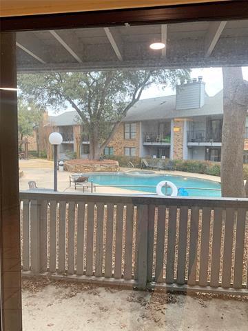 Welcome! Your new home awaits! Sit out on your covered patio and look out at the pool. Get cozy in front of the brick fireplace. Enjoy the convenience of hard flooring only ~ no carpeting in this unit. Creamy neutrals ensure your furniture will fit right in. Kitchen has a microwave and a refrigerator. The primary bedroom closet is a walk in with built ins. Great location, near major roads, shopping, dining and, even better, Crumbl Cookies!