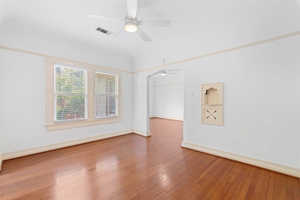 Charming one bedroom one bathroom steps away from Mandell Park on one of the most renowned esplanade streets in Montrose. Enviably positioned across Richmond from the famed Saint Augustine hotel and The Menil Collection. Freshly painted,apartment features original wood floors,plaster walls,high ceilings,in unit laundry,gas stove and is drenched in natural sunlight. Apartment #3 is on second floor. Enter through front door or up back steps. Small back balcony overlooks TWO GREEN SPACES Minutes from TMC,Houston's Museum District,St Thomas University,Rice University,some of Houston's most sought after dining hotspots and cocktail lounges...Make your appointment today. *NOTE: This property has plaster walls. Artwork must be hung from original picture molding MLS# 27429603