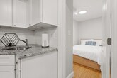 The advertised rate of $4,880/month is the lowest available price, based on a 1 month(s) stay with a move-in date of April 10, 2026. Rates vary depending on the duration of stay, season, and other parameters. For exact pricing and additional pricing components, please visit our website and enter your desired move-in and move-out dates. The rate is applicable when billed upfront; it can be higher if billed in multiple payments. Feel at home in this North End apartment, right in the heart of Boston's Historic North End. This small, but nicely appointed apartment is located on the ground level. The windows face the building, so while there is natural light from the door to the courtyard and bedroom window, there is not a lot, especially if it is cloudy. This private apartment features a private entrance and a separate bedroom with a full bed, high-end mattress, and bedding. There are under-bed storage drawers and custom closet space with built-in drawers, a full-length mirror, and coat hooks. The furnished sitting area includes couches, a dining table and chairs, and a 40" flat screen 4K Smart TV. The fully equipped kitchen has granite countertops, stainless steel appliances, pots, pans, dishes, glassware, and flatware. There is also a full bathroom with a shower, medicine cabinet, and vanity, as well as a free in-unit washer and dryer. Amenities include a private courtyard, a lobby for package delivery, all utilities (electric, hot water), central air (A/C and heat), business-class wireless internet, and free laundry. Walk to Haymarket (T), TD Garden, Faneuil Hall, Government Center, MGH, and all the best restaurants and shops Boston has to offer. This is a Tier 1 location in a beautiful historic neighborhood. Keys will be available on site for check-in. Includes a matching desk with lamp and chair. [SI]