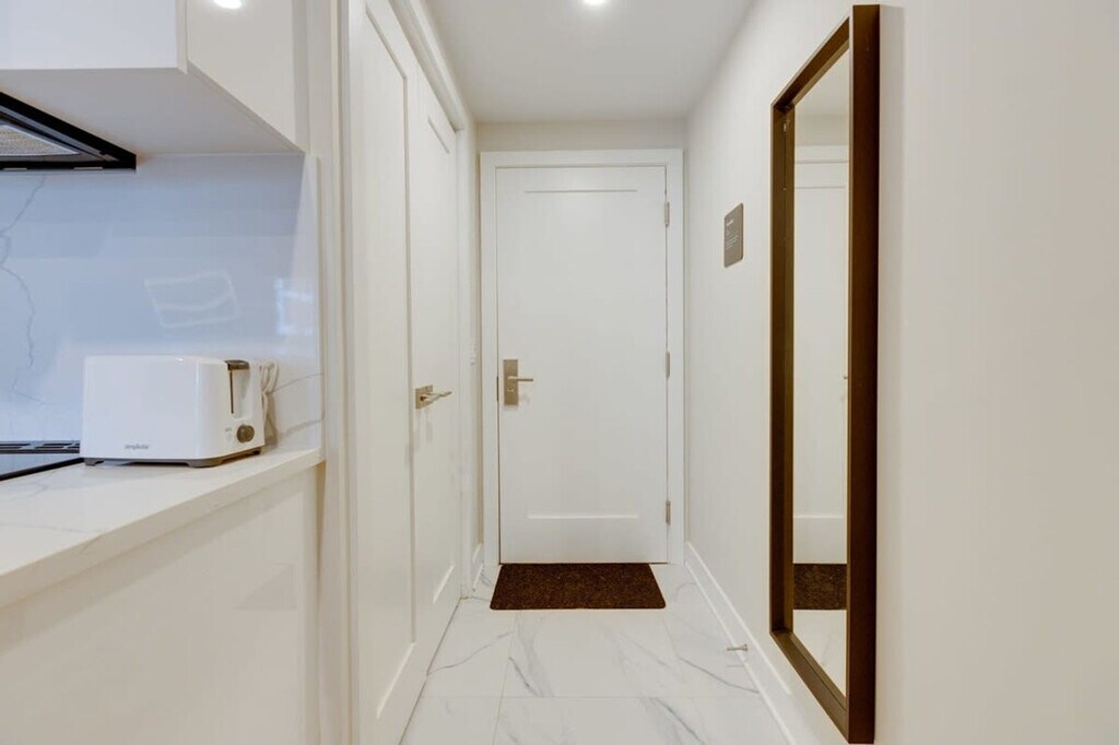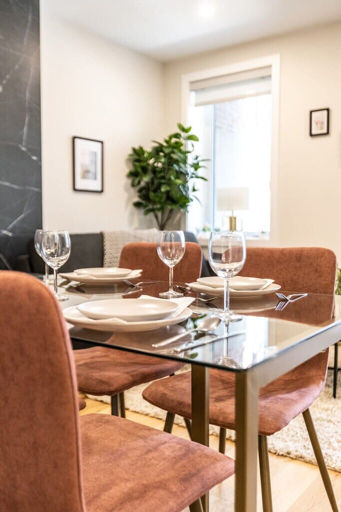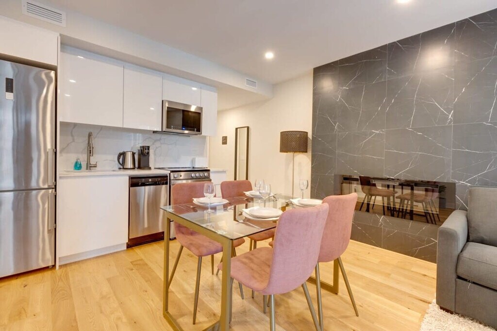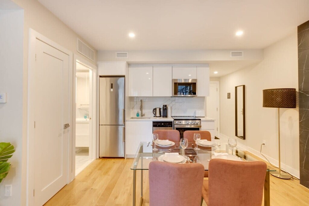Feel at home in this luxurious 1-bedroom apartment in Montreal's prime location, situated in a highly secured area. This 1-bedroom apartment with a sofa bed is newly renovated and equipped with new high-end furniture, a fully stocked kitchen, a 65-inch smart TV with access to your favorite platforms, high-speed internet, and an upgraded bathroom. You'll also enjoy top-of-the-line appliances during your stay, including an in-unit washer and dryer, and some complementary coffee and tea. This unit has everything you need to make this your ideal temporary home. A baby crib is available for an additional fee (limited quantities available). Located in the Golden Square Mile, a prestige and highly secured area, you're steps away from St-Catherine/Sherbrooke/Crescent street, downtown shopping, McGill & Concordia University, Bell Center, Museum of Fine Arts, and the Grand-Prix festivities on Peel/Crescent/Saint-Laurent Street. Guy-Concordia metro/subway station is a 10-minute walk away. Ubers and taxis are always available, and several bus stops are within a 2-5 minute walk. Downtown is a 5-10 minute walk away. Smoking is not allowed; breaking this rule will incur a $500 fine. Parties and excessive noise are strictly forbidden; at the first complaint, the booking will be terminated without refund. All guests must adhere to building policies, rules, and general maintenance requirements. To ensure the safety of all tenants, this building is equipped with security cameras in the common area hallways, stairwells, and entrances. Check-in form must be filled out prior to arrival.