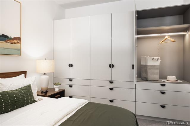 Modern Living with Resort-Style Amenities Discover a refined blend of comfort, style, and convenience in this beautifully designed residence. Enjoy this art inspired modern living with neutral colors, wood-style luxury vinyl flooring, and elegant matte black fixtures throughout a thoughtfully curated interior. Thoughtfully designed built-in, monochromatic cabinetry provides sleek, seamless storage, adding to the home’s clean and uncluttered aesthetic. The kitchen features stainless steel appliances, quartz countertops, custom Kember cabinetry. Additional comforts include walk-in closets, individual outdoor spaces, and the convenience of an in-home washer and dryer. Many units offer stunning mountain or city views and movable islands for flexible living. A raised patio creates an inviting spot to unwind and take in the surroundings, while soaring ceilings draw the eye upward to a tranquil loft that overlooks the entire space. Expansive living room windows frame the outdoors and include privacy shades, allowing you to choose between soft light or a cozy, intimate atmosphere—perfect for your own oasis in the city. This community elevates everyday living with an unmatched suite of amenities, state of the art fitness center with two Peletons, and a yoga studio, community lounge with full kitchen for community events or private events, Two rooftop terraces offering breathtaking mountain & city views complete with a rooftop plunge pool, grills & a fire pit. Bicycle storage with maintenance workstation, Pet spa, Dedicated Fetch package delivery system and Controlled-access parking garage complete with EV charging stations, Resident storage. Bathed in natural light, this serene unit offers a peaceful retreat above the energy of Colfax. Whether you're seeking a peaceful retreat or a vibrant place to connect, this home and its community deliver an elevated living experience with every detail designed for comfort, convenience, and inspiration. Apartment MLS# 3992167