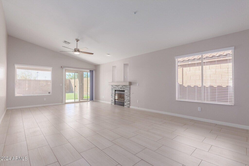Come check out this beautiful cozy 3 bed, 2 bath home with a fireplace. Enjoy the low maintenance and private backyard, a refreshing play pool with solar heating to extend the swimming season, artificial turf and a covered patio. Garage includes a coveted mini-split heat and cooling system that allows for comfortable use all year long. It is also located in McDowell Mtn Ranch. This community has so much to offer. There are community parks, heated pools and spas, splash pad, pickleball, tennis courts, basketball courts, walking paths. This home won't last long! Cleaning fee: $400.00, pet fee: $500.00, one time admission fee: $150.00, credit check fee: $45.00 per adult. Tenants pay for pool and landscaping service.