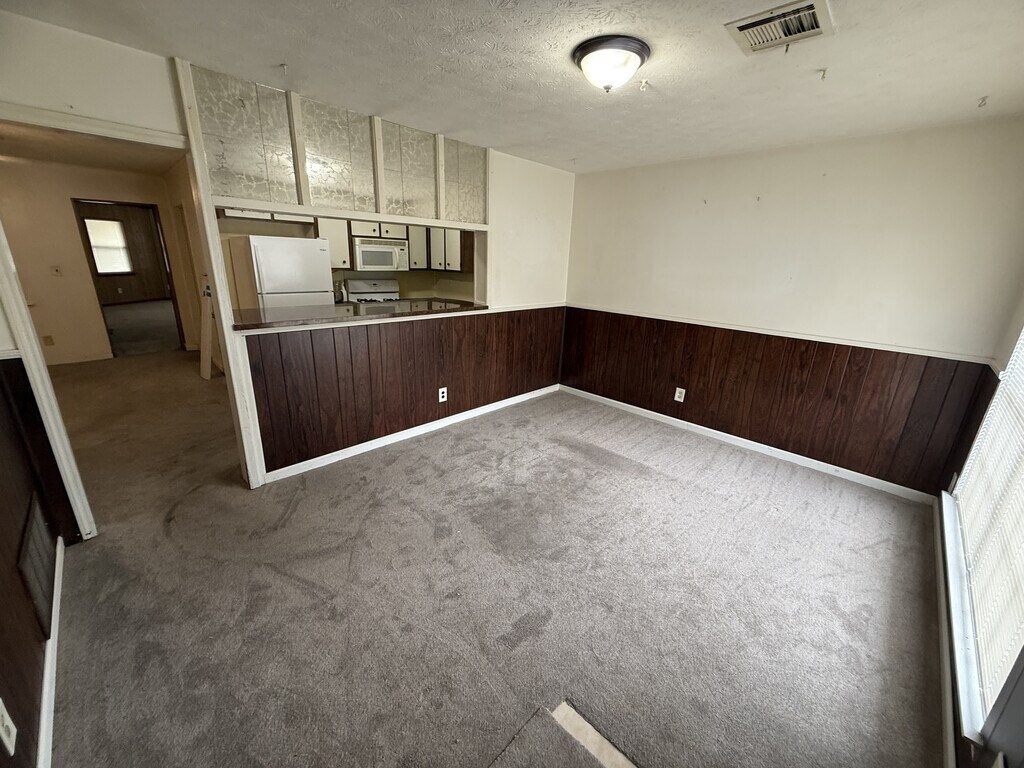 $200 Off Deposit! This roomy 4 bedroom, 2 bath home offers exceptional space and versatility, featuring multiple living areas perfect for entertaining or relaxing. The large, window-lined bonus room is filled with natural light, while the cozy family room provides a comfortable gathering spot. The kitchen opens to a dining area and includes ample cabinet space, with a unique half-wall bar for serving and casual meals. Bedrooms are generously sized, and the home includes two full bathrooms for convenience. Outside, enjoy a fenced backyard with mature landscaping, a covered carport, and a long driveway for plenty of parking. Distinctive brick accents and decorative front details give this home curb appeal you won't forget. Section 8 Welcome To Apply!