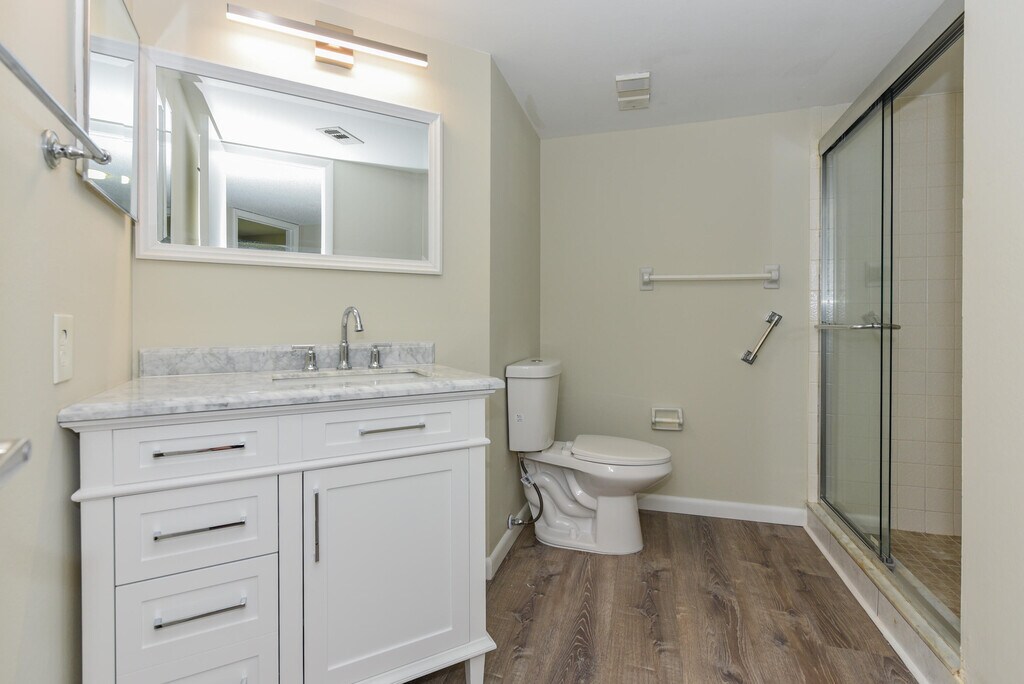 Welcome to this beautifully remodeled 2-bedroom, 2-bathroom condo with peaceful lake views! This bright and inviting second-floor residence features an open-concept layout and a fully renovated kitchen complete with quartz countertops, shaker soft-close cabinetry, and modern finishes. Luxury vinyl flooring runs throughout the home, paired with fresh interior paint and updated fixtures. Both bathrooms have been tastefully upgraded with new vanities and stylish finishes. The enclosed balcony provides additional living space--perfect for morning coffee or relaxing while overlooking the tranquil lake. Additional updates include a brand-new A/C, new washer and dryer, and upgraded lighting throughout. The community offers a sparkling pool, and the HOA covers water, exterior maintenance, roof,