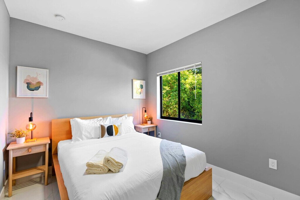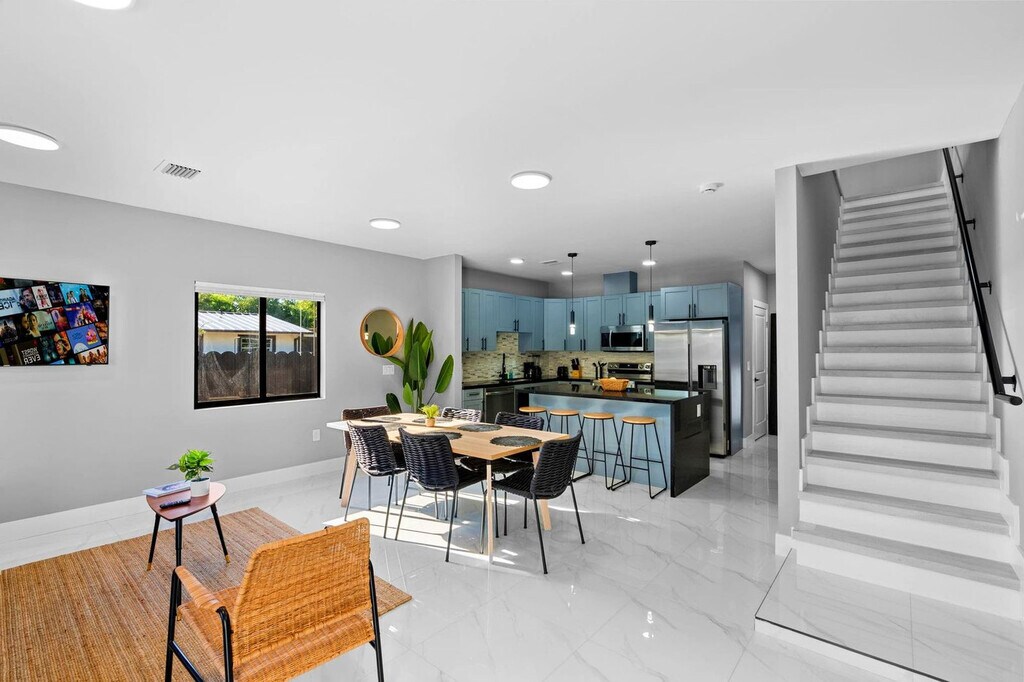 Welcome to your modern Miami oasis! This modern townhouse is designed for comfort and convenience, featuring a fully equipped kitchen, air conditioning, and free parking. Perfectly located just 5 minutes from the vibrant art and dining scene of Wynwood, 13 minutes from Miami International Airport, and only 15 minutes from Brickell and Downtown. Whether you're here to explore or unwind, this cozy home-away-from-home puts the best of Miami right at your doorstep. This bright and spacious two-story home is perfect for your next Miami stay. It features four comfortable bedrooms with queen-size beds, an open living room with a comfy sofa and TV, a fully equipped kitchen for all your cooking needs, an in-unit washer and dryer for added convenience, free parking for two vehicles, and air conditioning to keep you cool. Thoughtfully decorated to feel just like home, this smart layout offers great value, making it perfect for families or group getaways. Located near top attractions, it ensures an easy and exciting visit. Nearby attractions include the Shoppes of Liberty City, a small local shopping plaza featuring a Winn-Dixie grocery store and convenient retail shops, just 0.9 miles away. Charles Hadley Park, a vibrant green space perfect for sports, family picnics, and community events, is about 1 mile away. The Historic Hampton House, a beautifully restored landmark offering cultural exhibits, programs, and live music, is also about 1 mile away. The African Heritage Cultural Arts Center, home to classes, performances, and events highlighting African and African-American culture and creativity, is about 1 mile away. Miami-Dade College Medical Campus is a key educational center just a 5-minute drive away. Miami Jackson Senior High School is 0.5 miles away. Miami International Airport is 7.7 miles away, approximately an 18-minute drive. Downtown Miami and Museum Park, where you can explore Bayside, the Perez Art Museum (PAMM), Phillip and Patricia Frost Museum of Science, and ride the Metromover for free around the city center, are 4.7 miles away. Several Metrobus lines serve the area, and nearby Metrorail stations like Allapattah and Brownsville are within 1.4–1.5 miles by car. Miami International Airport is accessible via the nearby Metrorail/Metrobus network. Upon arrival, the apartment will receive basic supplies to ensure a comfortable stay on the first day. Parties or a high volume of sound that annoys neighbors is not allowed in the unit, and if this rule is ignored, the building may fine you. Quiet hours are between 22:00 and 8:00. To ensure a secure experience, we kindly ask you to register the main guest staying with us by providing a photo ID on the day of check-in. Smoking is not allowed inside, as it may lead to a fine. Avoid excessive noise, as we are located in a residential area. Check-in time is at 16:00 and check-out time is at 11:00. If you require a late check-out, please contact us 24 hours in advance; this will incur an additional cost. Package deliveries to the property address are not allowed. Unfortunately, we do not provide washcloths. Please feel at home and keep household items inside the house. In case of any lost linens or apartment keys, an additional cost will be charged to replace them. Don’t forget to turn off the air conditioning when leaving; your cooperation is essential to maintain a comfortable environment for everyone.