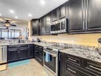 AVAILABLE DECEMBER 1,2025 for Annual (12 month) or short term (minimum 30 day rental). Annual rate: $3600/month Peak-Season (Jan-April 2026) $6500/month plus tax. Stunning Direct Gulf Front Condo! Enjoy the best of beach living in this newly updated 2 bedroom/2 bath condominium home directly on the beach. Completely renovated kitchen features new custom cabinetry with soft close doors and drawers,granite counters and more. High end Stainless Steel appliances,French door refrigerator,range + combination microwave/convection oven. Newer full size front loading washer & dryer. Wake up to the sounds of the surf in the master bedroom with a king size bed,on-suite bath,step in shower,huge walk in closet with custom built-in storage,and a 50" flat panel television. Brand New Impact Sliding glass doors in both the living room and master bedroom open to the balcony overlooking the beach. The comfortable living room offers plenty of seating and a 60 inch flat panel TV. The guest bedroom has a queen bed,on-suite bath with tub/shower combination and a flat panel television. Beautiful hard wood floors throughout. The balcony is screened and has electric storm shutters. Turnkey furnished. Two under building parking spaces #24 & #25. Surfside Towers features assigned under building/garage parking,a secured lobby entry,a heated pool and spa directly on the beach,game room with pool table and ping pong,a newly updated fitness center,BBQ grills and a party/gathering room. Sorry,no pets & no smoking.