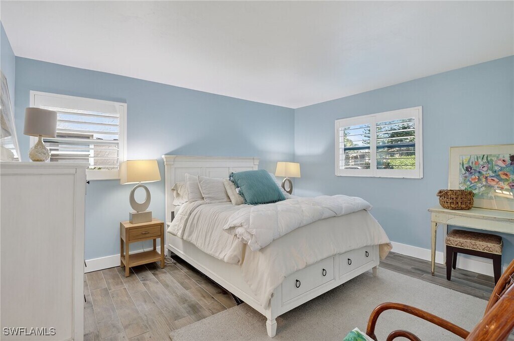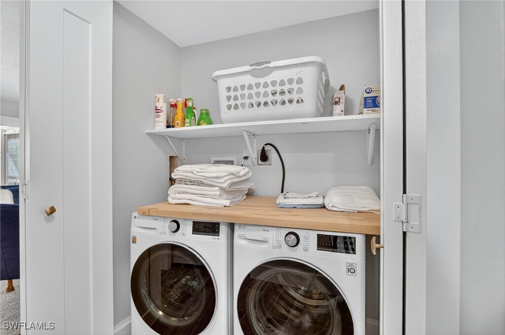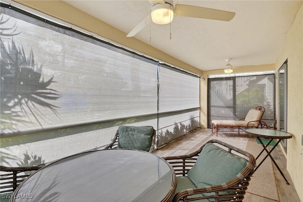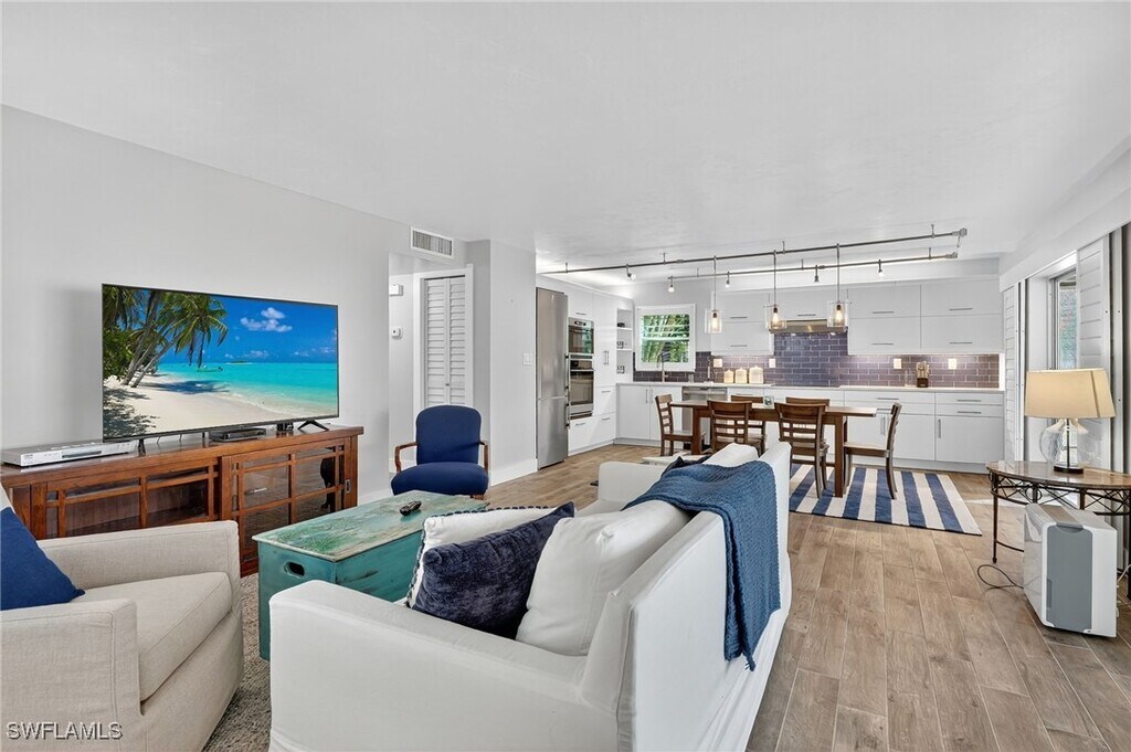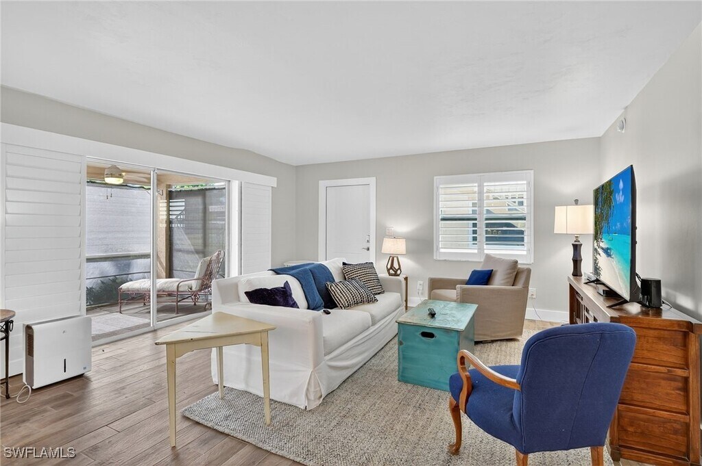 This charming,first floor 2 bedroom/2 bathroom condo is the perfect short or long term rental for simple,modern living. Completely renovated,this home boasts an open layout illuminated by natural light,new laminate wood floors and upgrades galore. This home features a spacious living area with brand new furniture,appliances and television,or effortless,turnkey living. Primary bedroom features a new King sized bed,spacious closet and en suite bathroom with shower. Second bedroom has two new Full sized beds and large closet. Second bathroom offers a brand new shower and bathtub. Private landscaped views from living and kitchen area can be enjoyed inside or outside on the enclosed lanai,which is perfect for opening up for fresh air or leaving closed while enjoying a good book or cup of coffee. Washer and dryer are conveniently located in residence,as well as additional storage unit outside,great for bikes and beach chairs! Royal Bay Villas is centrally located in Naples highly sought Royal Harbor area. Minutes from downtown Naples,shopping,dining and entertainment,as well as spectacular Naples beaches! Community pool and tennis courts are available for tenants to use throughout their stay. Don't miss this opportunity to savor a piece of paradise in this one of a kind home!