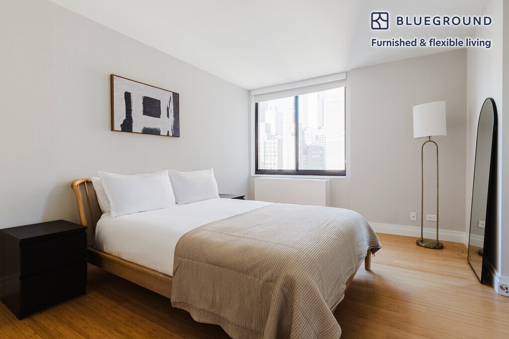 Discover the best of New York, with this one bedroom apartment in Kips Bay with high floor views over the city. It’ll be easy to simply show up and start living in this furnished apartment with its fully equipped kitchen, living room, and our dedicated, on-the-ground support. (ID #NYC1640) The advertised rate of $6,398/month is the lowest available price, based on a 12 month(s) stay with a move-in date of May 15, 2026. Rates vary depending on the duration of stay, season, and other parameters. For exact pricing and additional pricing components, please visit our website and enter your desired move-in and move-out dates. The rate is applicable when billed upfront; it can be higher if billed in multiple payments. Brokers are welcome to reach out. Were you looking for an unfurnished lease? Try Blueground instead and upgrade from unfurnished to furnished living: - Furnished at rates comparable to unfurnished - No setup or furniture costs - save thousands - Move-in ready - save time, just bring your suitcase Designed with you in mind As with any Blueground apartment, you’ll find a thoughtfully designed space complete with beautiful furniture and a fully equipped kitchen in this one bedroom property. And, thanks to our superior quality mattresses, fully stocked linens, and towels, you can relax knowing you’ll always feel comfortably at home. When you’re ready for some fun, you can take in the New York vibes or bring the entertainment to you with the premium wireless speaker or smart TV. This apartment also offers in-floor laundry. Sleeping arrangements Queen Bed, 63in/160cm Amenities Building amenities unique to this one bedroom apartment include an on-site: - Doorman - Dryer of floor - Elevator - Swimming pool - Washing machine on floor - Lounge - Sauna Arrival and ongoing support The entire apartment is yours to enjoy! Throughout your stay, you’ll have access to our Client Experience team through the Blueground App. You can schedule additional cleanings, submit maintenance requests, and view our neighborhood recommendations with just a few taps. We’ll share all details upon confirmation of your stay. Ideally Located This furnished property is situated in Kips Bay. Stretching from the East River to Lexington Avenue, the peaceful neighborhood offers convenience and easy access to the rest of the city. Several hospitals are located here, making it a hub for medical care. Kips Bay offers dining options for every budget as well as numerous cinemas and fitness centers. During the weekends, locals stroll alongside the water, take the water taxi to another borough, or hang out in one of the parks, such as Bellevue South. From here, Rockefeller Center is only 20 minutes away by subway. Other things to note Building amenities may have an extra cost. This Blueground apartment has flexible lease options, allowing you to book it for one month, a year, or more. Brokes CYOF. We take great pride in ensuring every photo displayed is shot in our own units with our actual furnishings. That said, we regularly refresh our decor and furniture arrangement, which may differ from what’s pictured. [SI]