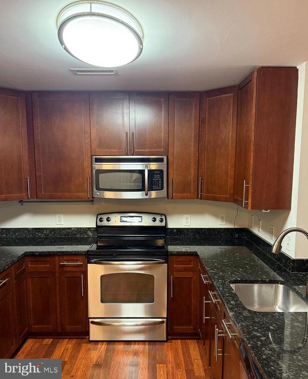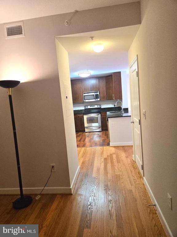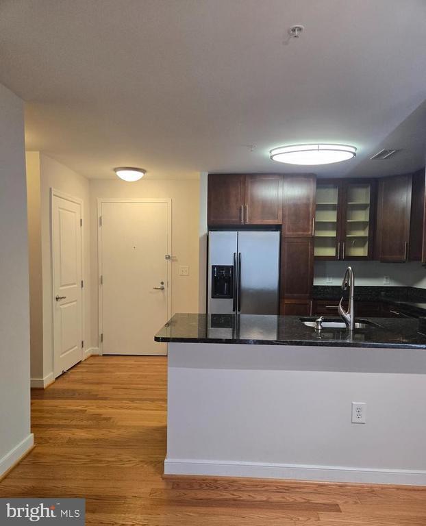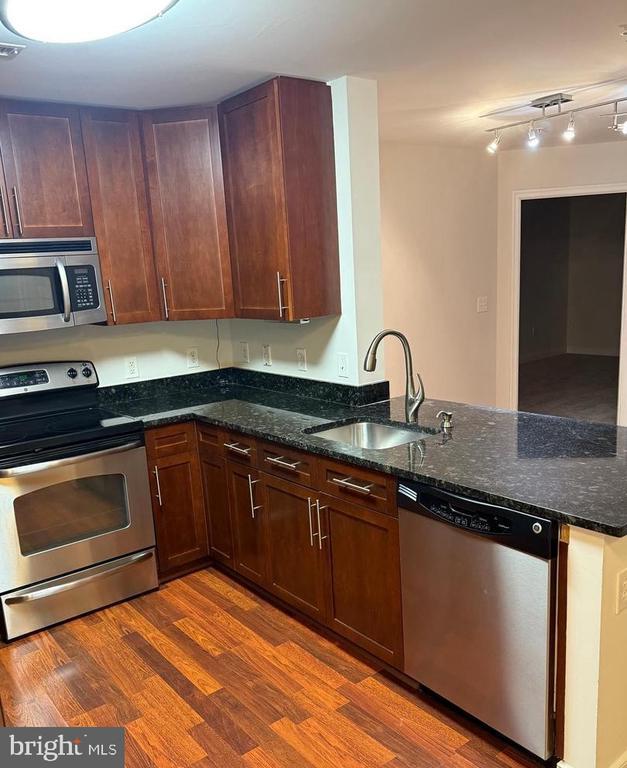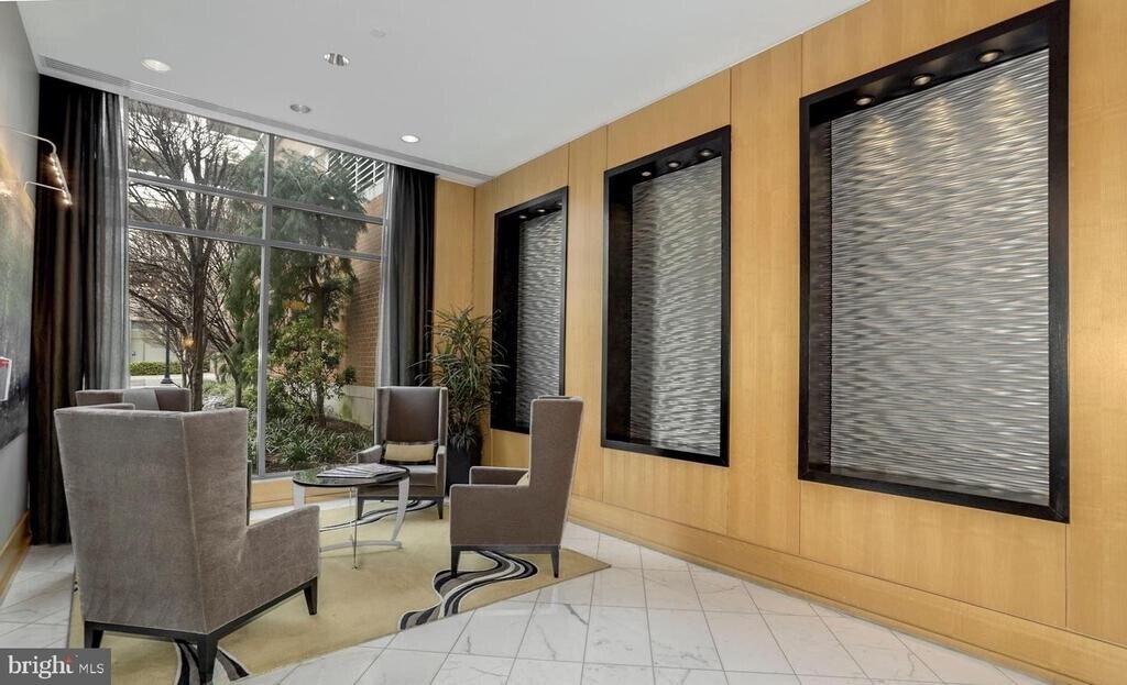 Stop and take a look at this sought after premier unit with a Large Patio. 2 Bedroom 1 Bath with a Private 500 sq ft Patio with views from each bedroom. Relax on your private Patio and soak up the rays. There is also a sought after storage unit with an garage assigned parking space .The condo includes stainless steel appliances, hardwood flooring, kitchen with island, granite countertops, recessed lighting, carpet, washer and dryer. If working from home you can use the 2nd bedroom as an office or work in the beautiful clubroom. The owner's suite and 2nd bedroom are spacious with views of the patio. There is a tub shower in the bathroom. Relax on the rooftop terrace, the same level as the outdoor pool. The building overlooks Old town Alexandria, DC, the Capital Wheel, MGM and the Woodrow Wilson Bridge. The concierge is on site for your convenience. Exercise in the fitness center or relax in the clubroom. Watch TV, play pool, play the piano or walkout to Mezzanine Patio while viewing the Capitol Wheel. Water, Trash and Storage is included in rent. Close to National Airport, Andrews Air Force Base, and Bolling Air Force Base.