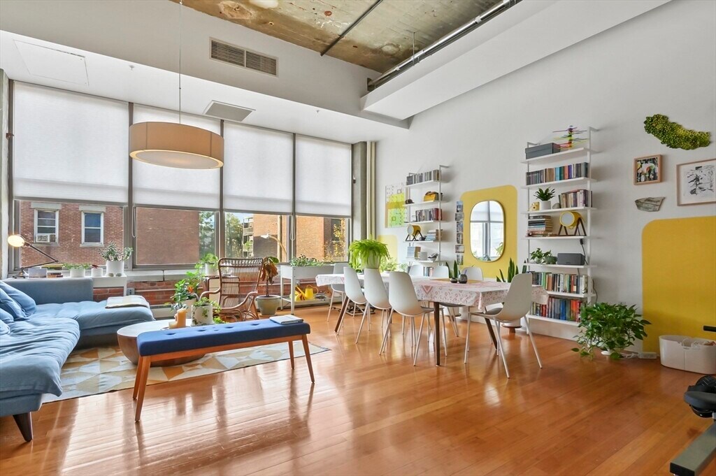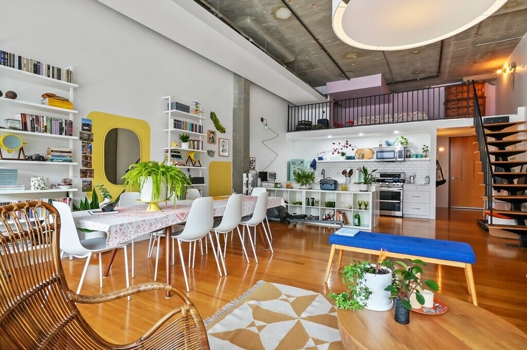 Great opportunity to rent at the 156 Porter Lofts in Jeffries Point! This spacious,bright condo is highlighted by the high ceilings,oversized windows,newly renovated kitchen,one car PARKING,and an incredible common roofdeck with skyline views! The modern kitchen features new cabinets,quartz counters,tiled backsplash,ample counterspace,stainless steel appliances with a midcentury modern fridge,and open shelving. The spacious living area allows for flexible living with many layout options and plenty of space for a formal dining area. The updated bath w/subway tiled surround,in unit laundry,central AC,and new bamboo flooring in the loft area complete this apartment. All this conveniently located steps to the Blue Line,new bars and restaurants in Jeffries Point,East Boston Greenway,Piers Park,and with easy access to Rt 1 and the Mass Pike. Professional building with on site management. Available 11/1! MLS# 73438976