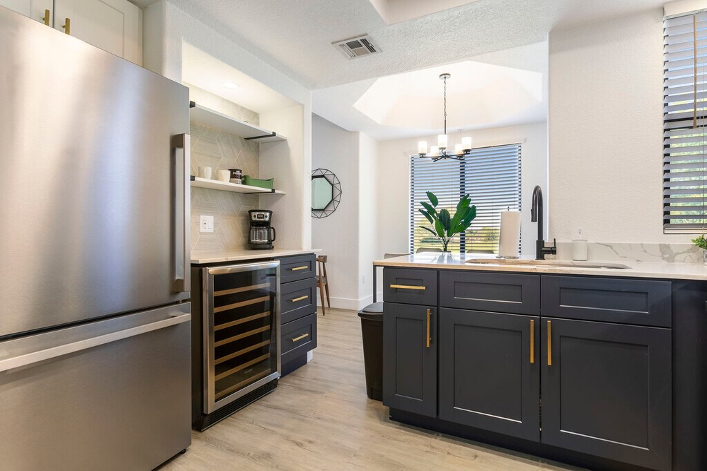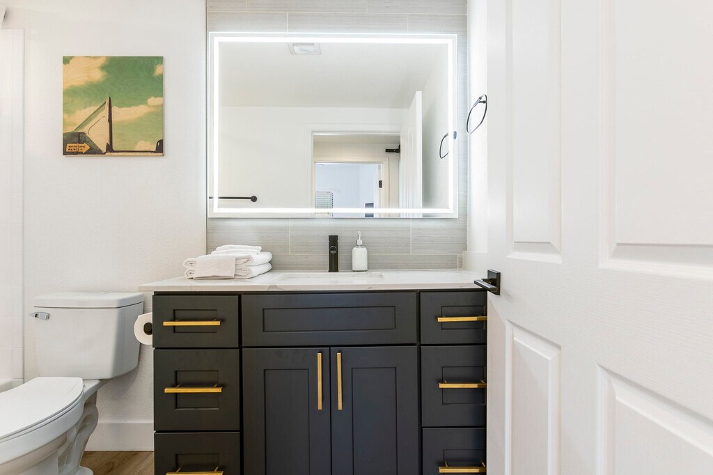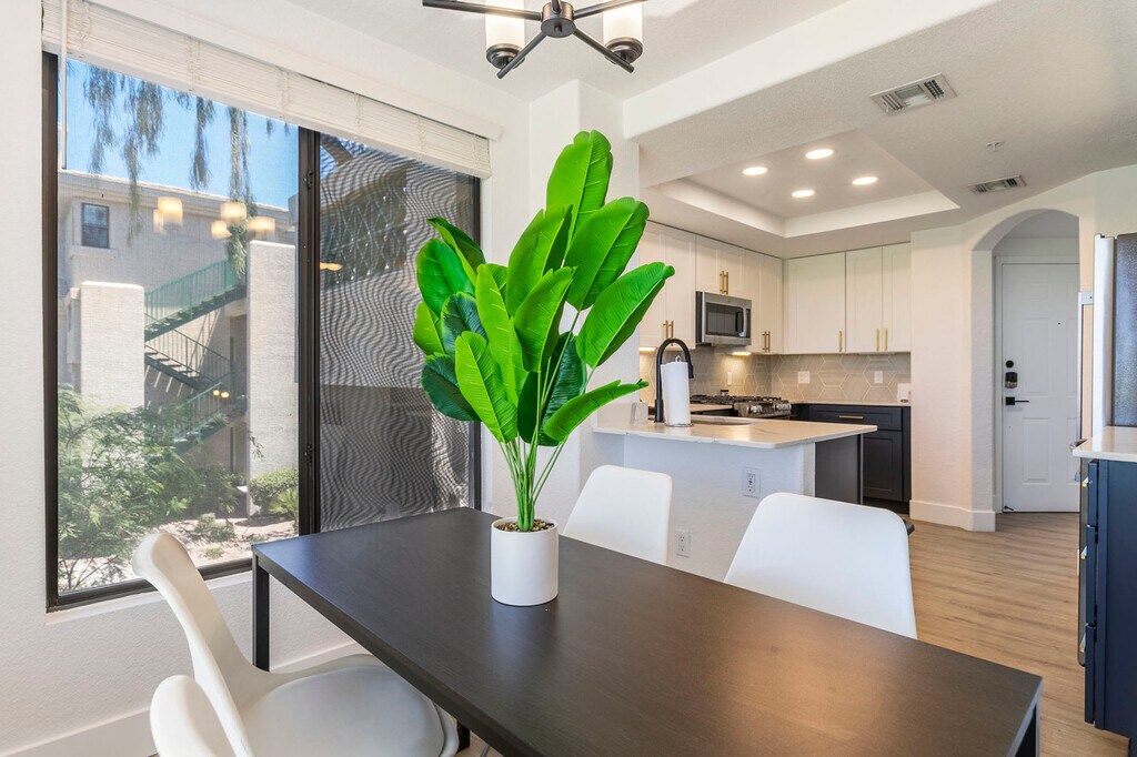 Feel at home in this newly built condo in Scottsdale, steps away from shopping, dining, and entertainment, and overlooking the Westin Kierland Golf Course. This garden-style unit requires climbing one to two flights of stairs; ground floor units are available upon request. This condo is suitable for a family, group of friends, or business travelers and has all the amenities necessary to enjoy your stay. It features quartz countertops, stainless steel appliances, a fully equipped kitchen, a washer/dryer, complimentary coffee, 100mbps+ internet, modern decor, and a Smart-TV with streaming apps installed. Great amenities await you, including a luxury fitness center, a pool with spa cabanas and fire pits, pool access where allowed by season and weather, a jacuzzi, and a lounge and game room with a pool table. Pets are welcome with a fee of $100-300 based on stay length. Mid-stay cleanings and early check-in/late checkout are available for an additional fee. Located in Kierland Commons, this condo is close to world-class golf courses, hiking trails, and spas. Enjoy the best of Scottsdale, then return for a meal cooked in the fully equipped kitchen and take a dip in the jacuzzi. Ideally located close to different attractions, this unit is just a short drive away from everything and is even walkable to Kierland Commons. Smoking of any kind is not permitted within or outside of the condo, including balconies, patios, or common and/or parking areas. Any sign of smoking is a violation of the stay agreement, which may result in immediate termination and recovery fees beginning at $500. There is a $500 penalty for removing smoke detectors and a $200 penalty for lost key fobs. No outside guests are allowed without permission. Guests must agree to not disturb neighbors at all times during the stay and must observe quiet hours from 9pm-8am each day. The minimum age requirement of the primary person booking should be 22 years old for out-of-town guests and 25 years old for local guests. There is a maximum of 2 pets allowed (40lbs combined) and no Pit Bulls or Bull Mastiffs [similar breed] are allowed. All pets must be on a leash when outside on the property. A pet fee may be charged for guests traveling with an emotional support animal. Check-in is at 4 PM and check-out is at 11 AM, with a $75/hr late fee. [SI]