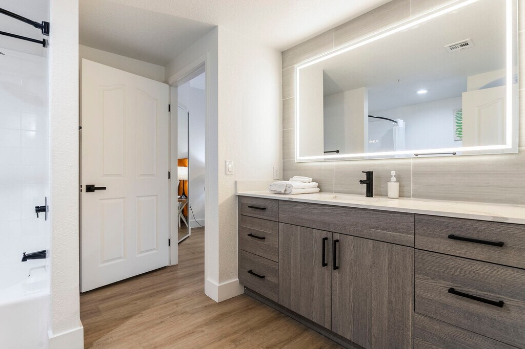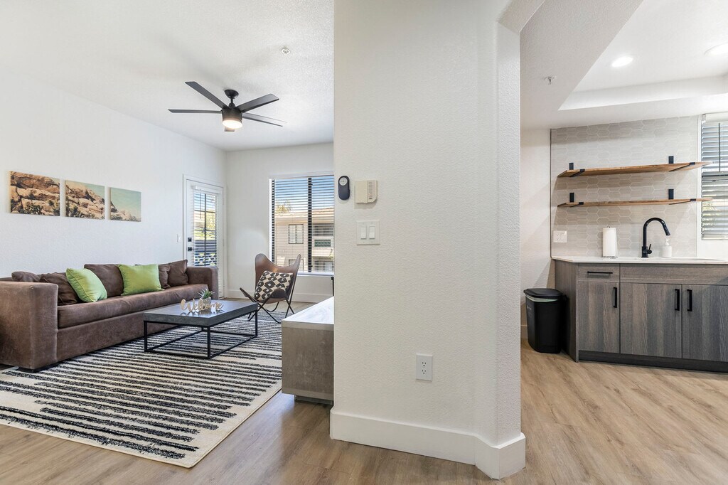 The advertised rate of $3,081/month is the lowest available price, based on a 30 day(s) stay with a move-in date of August 10, 2026. Rates vary depending on the duration of stay, season, and other parameters. For exact pricing and additional pricing components, please visit our website and enter your desired move-in and move-out dates. The rate is applicable when billed upfront; it can be higher if billed in multiple payments. Feel at home in this newly built condo in Scottsdale, steps away from shopping, dining, and entertainment, and overlooking the Westin Kierland Golf Course. This garden-style unit requires climbing one to two flights of stairs; ground floor units are available upon request. This condo is suitable for a family, group of friends, or business travelers and has all the amenities necessary to enjoy your stay. It features quartz countertops, stainless steel appliances, a fully equipped kitchen, a washer and dryer, complimentary coffee, 100mbps+ internet, modern decor, and a Smart-TV with streaming apps installed. Enjoy access to the luxury fitness center, pool with spa cabanas and fire pits, Jacuzzi, and a stylishly appointed business lounge and game room with a pool table. Pets are welcome with a fee of $100-300 based on stay length. All pets must be on a leash when outside on the property. Located in Kierland Commons, this condo is close to world-class golf courses, hiking trails, and spas. You can enjoy the best of Scottsdale, then return for a meal cooked in the fully equipped kitchen and take a dip in the Jacuzzi. The unit is ideally located close to different attractions and is a short drive away from everything, and is even walkable to Kierland Commons. Smoking of any kind is not permitted within or outside of the suites, including balconies, patios, or common and/or parking areas. Any sign of smoking is a violation of the stay agreement, which may result in immediate termination and recovery fees beginning at $500. There is a $500 penalty for removing smoke detectors and a $200 penalty for lost key fobs. No outside guests are allowed without permission. Quiet hours are observed from 9pm-8am each day. Guests must agree not to disturb neighbors at all times during the stay. Weapons and drugs are prohibited, and police will be called for any violations. Check-in is at 4 PM and check-out is at 11 AM, with a $75/hr late fee. Maximum of 2 pets (40lbs combined) are allowed, excluding Pit Bulls and Bull Mastiffs [or similar breeds]. [SI]