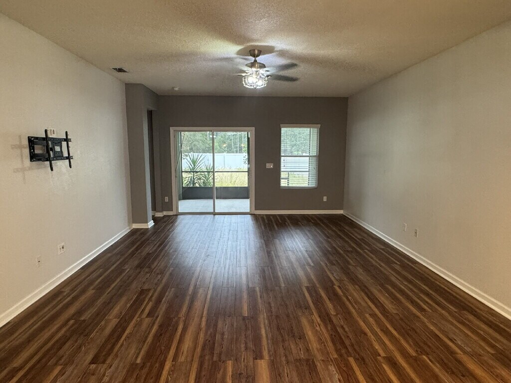 HURRY Before It's GONE!!!!! Yellow Bluff Landing property offering a 4 Bedroom, 2 bathroom open concept home with separate office at the entry. Master suite on one side of the house and the 3 bedroom's on the other side. Large open dining/living area overlooked by the stylish kitchen accompanying stainless appliances and center island. Harwood flooring throughout with updated wall paint. Washer/Dryer Included (owner will not repair/replace). Fully covered screened patio overlooking the large fenced in back yard. Master suite has a separate shower with garden tub and double vanities. The closet is huge!!! Amenity center/pool right down the road. Pet Friendly (Breed Restrictions Apply). Pet Rent is $40.00 per pet, per month added to the rent. Close to Major Shopping, Freeway Access, Dining, Airport and multiple Military Bases (Kingsbay/Mayport/NAS Jax.).