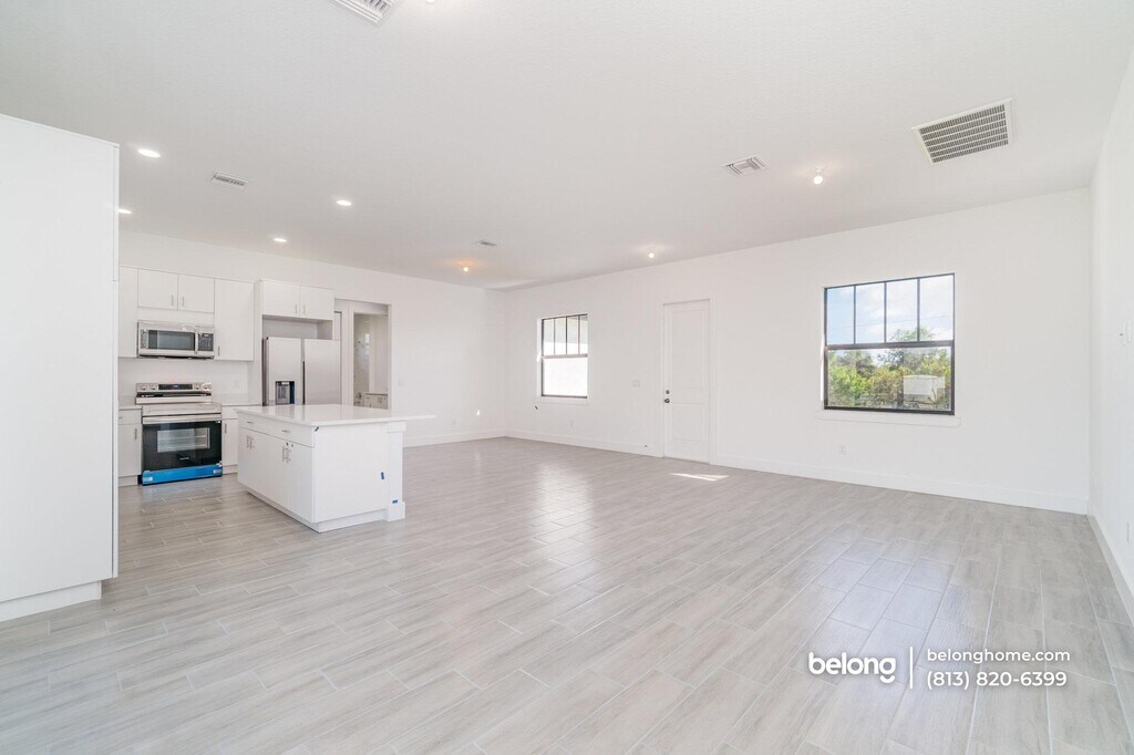 Modern comfort meets relaxed coastal living in this bright 4-bedroom, 2-bath home in Port Charlotte. Wide, open living areas are designed for connection, with large windows drawing in soft natural light and views of the peaceful yard beyond. Durable tile flooring flows throughout, adding both sophistication and practicality to the layout. In the kitchen, clean white cabinetry, sleek counters, and stainless steel appliances bring a fresh, refined look that complements the home’s airy feel. A center island offers extra workspace and casual seating, keeping mealtime conversations easy and enjoyable. Your main bedroom offers a calm retreat, featuring sliding glass doors that open to the outdoors, a walk-in closet, and an ensuite bath with dual sinks and a spacious walk-in shower. Three additional bedrooms and a second full bath provide plenty of space for comfort and versatility. An attached 2-car garage with an automatic door adds everyday convenience. Located in a serene part of Port Charlotte, you’ll find shopping and dining options just minutes away, including Publix, Winn-Dixie, and local favorites along South McCall Road. Nearby parks, golf courses, and scenic waterways make it easy to enjoy the outdoors, while access to SR-776 connects you to Englewood Beach and Venice within a short drive. *Our homes come as-is with all essentials in working order. Want upgrades? Request it through the Belong app, and our trusted pros will take care of the rest!