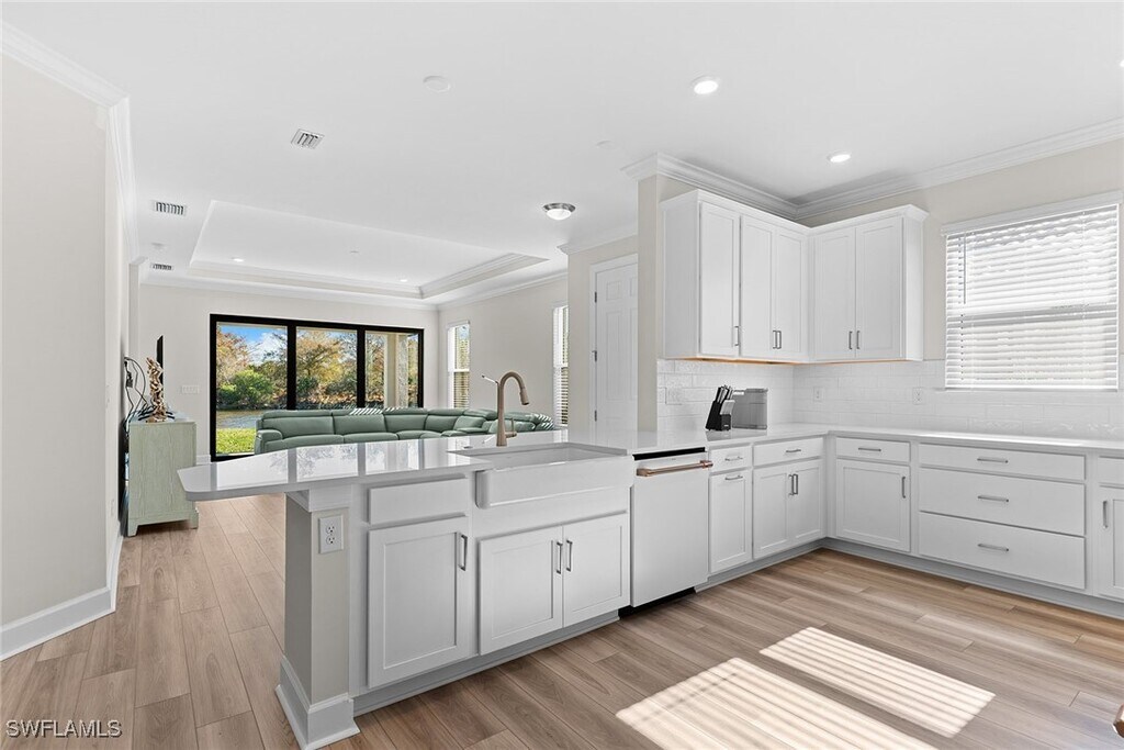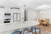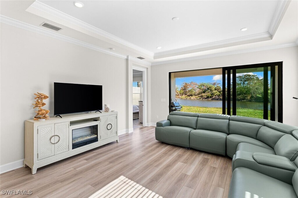 Gorgeous Brand New spacious home in Esplanade at the Islands featuring a great natural and water view. 3 Bedrooms and 2 Full baths. You will love this fresh and bright home with grand kitchen and upscale appliances with gas range and inline gas grill. Separate dining room adjacent to the kitchen. Bar stools and bar for casual dining and open floor plan. Get comfy on extra large leather couch with built in recliners. Wonderful Master suite with spacious 2 walkin closet spaces in one and a generous walk in shower. Other bath feature tub/shower combination. Each bedroom has a Queen bed and lights in the headboards. An extra den for hang out space too!! Pets with approval. Come experience Naples living a community with multiple amenities: Wellness Center and Spa now OPEN!! Great large community pool with hot tub spa and covered space/cabanas, all the towels you will need for fitness or pool. Enjoy a snack, coffee, or fine dining right on site. Gated community convenient to grocery, shopping, and not far from beaches both Marco Island and Naples. Enjoy for a month or more....