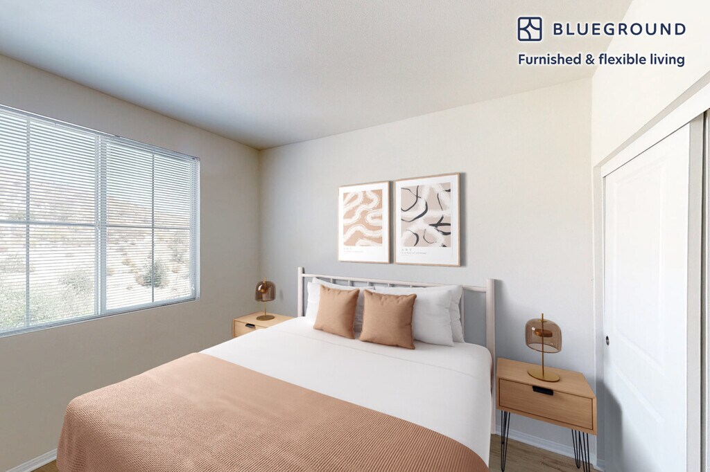 Staged photos of matching layout and similar décor Imagery shows same floorplan and building, and similar décor as we finish photographing this new unit. Be the first to rent! Show up and start living from day one in Simi Valley with this sophisticated two bedroom Blueground apartment. You’ll love coming home to this thoughtfully furnished, beautifully designed, and fully equipped Simi Valley home. (ID #LAX10815A) The advertised rate of $3,110/month is the lowest available price, based on a 12 month(s) and 30 day(s) stay with a move-in date of January 24, 2026. Rates vary depending on the duration of stay, season, and other parameters. For exact pricing and additional pricing components, please visit our website and enter your desired move-in and move-out dates. The rate is applicable when billed upfront; it can be higher if billed in multiple payments. Brokers are welcome to reach out. Were you looking for an unfurnished lease? Try Blueground instead and upgrade from unfurnished to furnished living: - Furnished at rates comparable to unfurnished - No setup or furniture costs - save thousands - Move-in ready - save time, just bring your suitcase Designed with you in mind As with any Blueground apartment, you’ll find a thoughtfully designed space complete with beautiful furniture and a fully equipped kitchen in this two bedroom property. And, thanks to our superior quality mattresses, luxury linens, and towels, you can relax knowing you’ll always feel comfortably at home. When you’re ready for some fun, you can take in the Simi Valley vibes or bring the entertainment to you with the premium wireless speaker or smart TV. This apartment also offers in-apartment laundry. Amenities Building amenities unique to this two bedroom apartment include an on-site: - Dryer - Washing machine - Parking Arrival and ongoing support The entire apartment is yours to enjoy! Throughout your stay, you’ll have access to our Client Experience team through the Blueground App. You can schedule additional cleanings, submit maintenance requests, and view our neighborhood recommendations with just a few taps. We’ll share all details upon confirmation of your stay. Other things to note Photos show same floorplan and building, and similar decor as we finish photographing this new apartment. This Blueground apartment has flexible lease options, allowing you to book it for one month, a year, or more. Parking is offered based on availability and is subject to a fee. Please keep in mind that this is a walk up building. We take great pride in ensuring every photo displayed is shot in our own units with our actual furnishings. That said, we regularly refresh our decor and furniture arrangement, which may differ from what’s pictured. [SI]