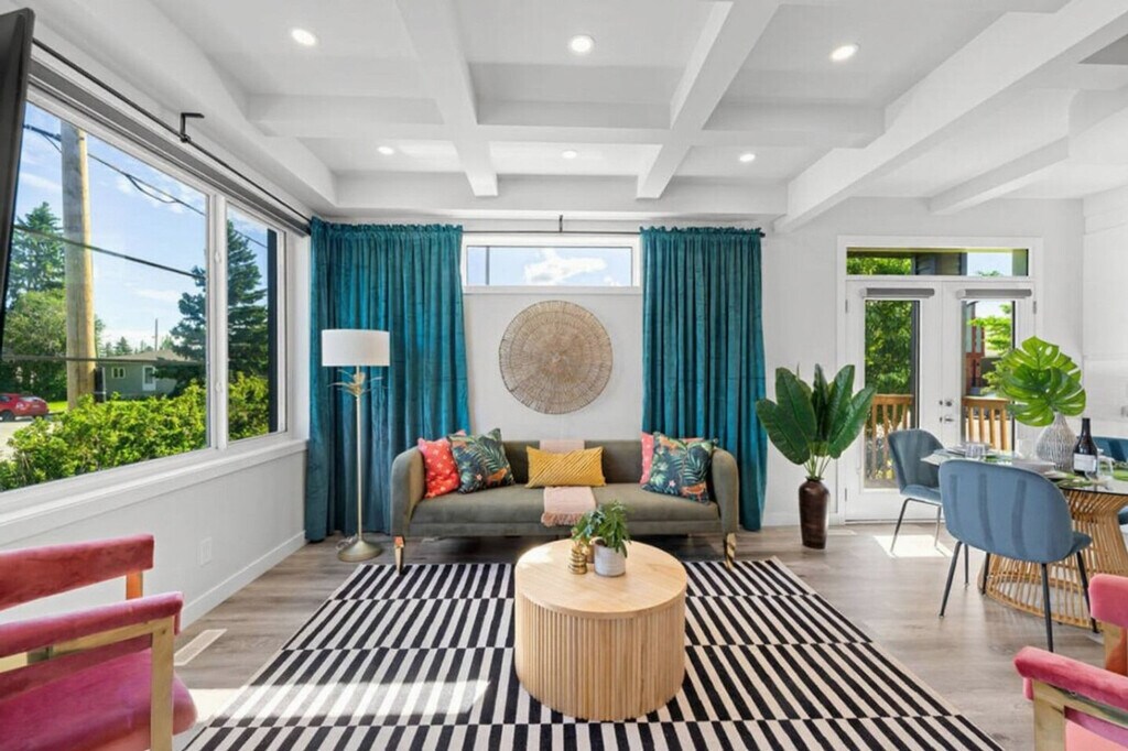Feel at home in this uniquely themed 3-bedroom, 2.5-bathroom home located on the main floor, minutes from Downtown, the University of Alberta, and West Edmonton Mall. With easy highway access and a child-friendly space, this home is perfect for families. Enjoy the convenience of single garage parking and a fully equipped kitchen, making it ideal for longer stays. Inside, you'll find a beautifully decorated space with simple, modern furnishings and a warm ambiance. The home features a king-size bed with an ensuite, a queen bed, and a twin bunk bed, all with fresh linens. Enjoy entertainment options with Roku TV and fast WiFi, perfect for streaming Netflix or working from home. The fully stocked kitchen includes brand new stainless steel appliances such as a microwave, fridge, electric stove, and dishwasher, along with all necessary cookware and utensils. Enjoy complimentary WiFi, tea, and coffee during your stay. The home offers single garage parking for your convenience. The Glenwood neighborhood in Edmonton offers a vibrant and diverse community with nearby attractions like the River Valley for hiking, biking, and fishing. West Edmonton Mall, one of North America's largest malls, is just a short drive away, offering over 800 stores and attractions. The neighborhood also features local shopping centers and restaurants with a variety of dining experiences. With easy access to public transit, Uber, or taxis, exploring Edmonton is convenient and hassle-free. This is a non-smoking and non-party home. A $250 fee will be charged if the property smells of smoke or if any evidence of smoking is found inside. Quiet hours are between 10 PM and 8 AM to respect neighbors. The maximum occupancy is 6 people, and any additional guests will incur a $40 fee per person per night. Late check-out fees apply if the property is not vacated on time. Keyless entry is provided for easy self-check-in, and you have full access to the home during your stay. The basement is a separate listing, so you may encounter other guests outdoors if it is booked simultaneously. The home is remote work-friendly with fast WiFi and a comfortable workspace, allowing you to work from home with ease. A laptop computer is not included. Registration Number: 521180951-001 [SI]