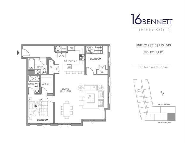 Come and see this gorgeous and modern two bedroom, two bathroom apartment located at 16 Bennett St. in Jersey City! The building offers keyless entry, a luxurious roof deck that offers panoramic views of New York City, West New Jersey, and the Hackensack River. Also included are a communal gym and back yard with gas grills and a fire pit. The units have massive living spaces to match with high end finishes. The apartments boast large walk in closets, and include full size washer and dryers. With sprawling hardwood floors throughout and high end stainless steel appliances, no detail has been spared in creating the perfect rental apartment living experience. 16 Bennett offers free shuttle service to the JSQ PATH Station. Starbucks is available in front of the building, and parking is available for an additional monthly fee. *The advertised rent $2862 is the net effective. The gross monthly rent is $3,100 with 1 month free on a 13 month lease.