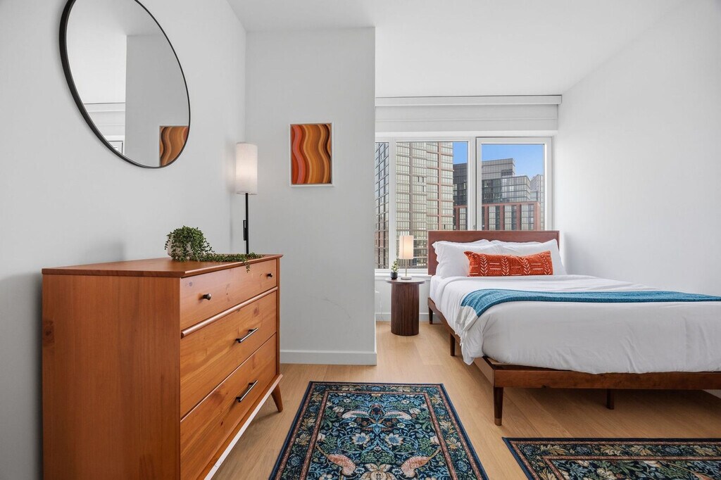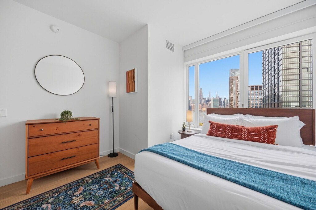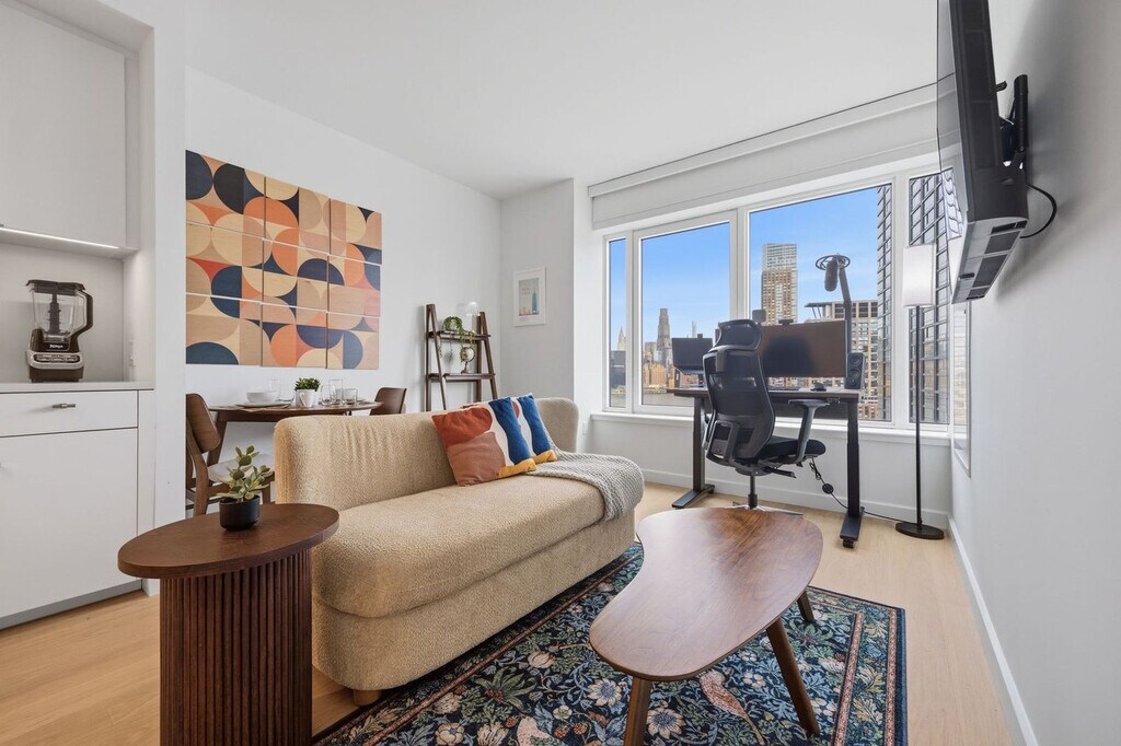 The advertised rate of $6,867/month is the lowest available price, based on a 30 day(s) stay with a move-in date of May 6, 2026. Rates vary depending on the duration of stay, season, and other parameters. For exact pricing and additional pricing components, please visit our website and enter your desired move-in and move-out dates. The rate is applicable when billed upfront; it can be higher if billed in multiple payments. Welcome to your new home at The Dupont in Greenpoint. Experience luxury waterfront living with stunning views of the Manhattan skyline and East River from this fully furnished 1-bedroom apartment. This apartment features a spacious king-size bed and an elegant 1-bedroom layout with generous closet storage, a full bathroom with high-end finishes and premium fixtures, and an in-unit washer and dryer for your convenience. The fully equipped kitchen boasts stainless steel appliances, quartz countertops, and sleek finishes. The living area includes a Smart TV and high-speed internet. Paid parking is available in the garage or via valet. Ideally located in Greenpoint, this apartment is steps from the waterfront esplanade, cafés, boutiques, neighborhood parks, the NYC Ferry, and the G-line station, and just a short ride to Manhattan. Enjoy city-edge living with a relaxing neighborhood vibe. Internet speeds are not guaranteed and may vary by device and location. Early check-in from 9 AM – 3 PM incurs a $75 fee, before 9 AM incurs one full night’s rent, late check-in after 8 PM incurs a $50 fee, late check-out from 11 AM – 3 PM incurs a $75 fee, and after 3 PM incurs one full night’s rent. Deep cleaning beyond normal use—such as stain removal, carpet shampooing, odor remediation, or cleaning requiring significantly more time than our standard turnover—is not covered by the Standard Exit Cleaning, and any additional charges will be documented with photos and billed at the professional cleaning rate. Includes a dedicated workspace with a large desk, ergonomic chair, and optional monitor, perfect for remote work or study. The home office set-up also includes private high-speed internet, a standing desk, a work chair, a 34-inch ultra-wide monitor, a microphone, a webcam, computer speakers, an LED streaming light, a keyboard, a mouse, a laptop stand, and a docking station. Partners reserve the right to conduct secure ID verification, background checks and request Proof of Income. Guests will have 24 hours to complete these steps. Booking confirmation is contingent upon the successful completion of these checks, as well as meeting the minimum eligibility requirements. [SI]