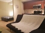 Feel at home in this beautiful, large 1-bedroom condo apartment. This apartment comes with a fully equipped kitchen and an in-suite washer and dryer. There is ample room for clothing storage with a walk-in closet. The unit has many windows equipped with manual blinds and shades, and the floor is wooden, making it comfy and warm. [SI]