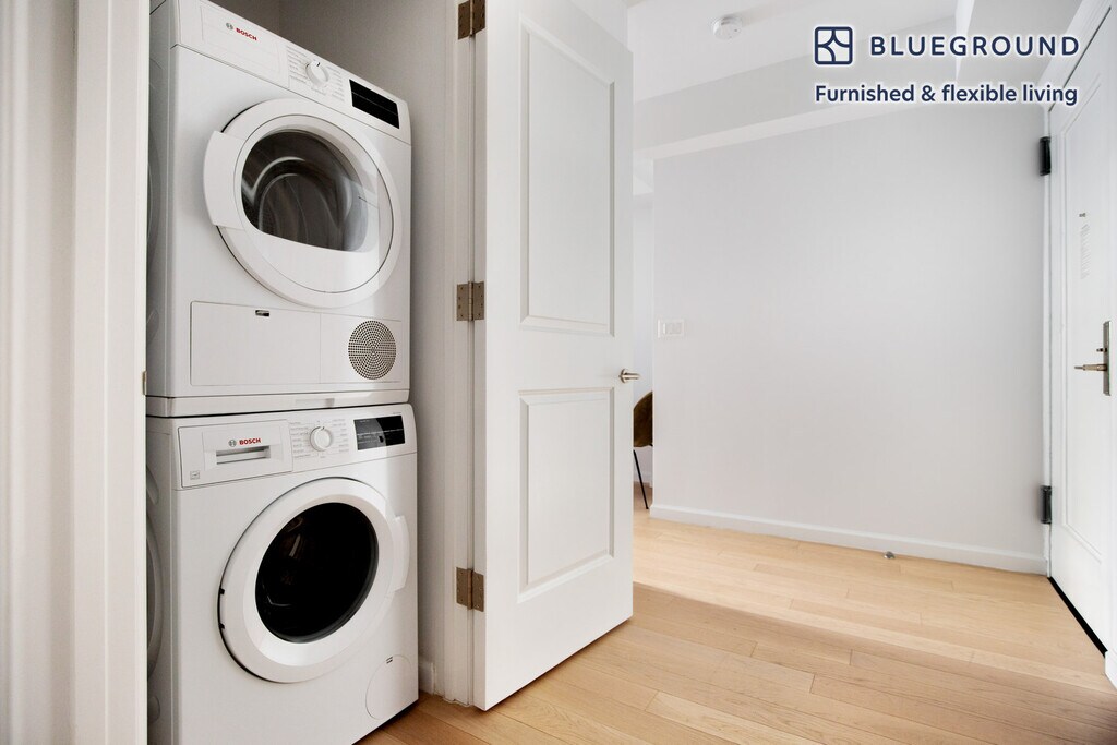 Feel at home wherever you choose to live with Blueground. You’ll love this spacious Midtown East furnished two bedroom apartment with its modern decor, fully equipped kitchen, and roomy living room. Ideally located, you’re close to all the best that New York has to offer! (ID #NYC1145) The advertised rate of $6,100/month is the lowest available price, based on a 1 month(s) and 17 day(s) stay with a move-in date of January 5, 2026. If you’re looking for a 1-year stay, the rate is $6,710/month. Rates vary depending on the duration of stay, season, and other parameters. For exact pricing and additional pricing components, please visit our website and enter your desired move-in and move-out dates. The rate is applicable when billed upfront; it can be higher if billed in multiple payments. Brokers are welcome to reach out. Were you looking for an unfurnished lease? Try Blueground instead and upgrade from unfurnished to furnished living: - Furnished at rates comparable to unfurnished - No setup or furniture costs - save thousands - Move-in ready - save time, just bring your suitcase Designed with you in mind Thoughtfully designed with bespoke finishes, modern furnishings, and a fully equipped kitchen, you’ll enjoy that “I’m home” feeling with this Blueground apartment. Whether you’re lounging in your beautiful living room streaming the latest and greatest entertainment on the smart TV or premium wireless speaker, or getting some well-earned rest on the superior quality mattress with luxury linens, you’ll fall in love with everything this Midtown East apartment has to offer. This apartment also offers in-apartment laundry. Sleeping arrangements King Bed, 70.8in/180cm Double Bed, 55in/140cm Amenities Building amenities unique to this two bedroom apartment include an on-site: - Doorman - Dryer - Elevator - Washing machine - Pets allowed Arrival and ongoing support The entire apartment is yours to enjoy! Throughout your stay, you’ll have access to our Client Experience team through the Blueground App. You can schedule additional cleanings, submit maintenance requests, and view our neighborhood recommendations with just a few taps. We’ll share all details upon confirmation of your stay. Ideally Located This furnished apartment is located in Midtown East. This bustling neighborhood is home to NYC landmarks like the Empire State Building, the United Nations' headquarters, and Grand Central Station. Midtown East is also home to a thriving dining scene, with everything from humble food carts selling hotdogs to white-tablecloth restaurants with multiple Michelin stars. There are also many cultural attractions, including the Museum of Modern Art, the lovely Japan Society, the historic Morgan Library, and more. Midtown East is also home to some incredible shopping, from the international flagship stores along Fifth Avenue to Bloomingdale's, one of the city's best-loved department stores. Other things to note Building amenities may have an extra cost. This Blueground apartment has flexible lease options, allowing you to book it for one month, a year, or more. Pets are welcome, though weight limits and breed restrictions apply and may incur fees. Brokes CYOF. We take great pride in ensuring every photo displayed is shot in our own units with our actual furnishings. That said, we regularly refresh our decor and furniture arrangement, which may differ from what’s pictured. [SI]
