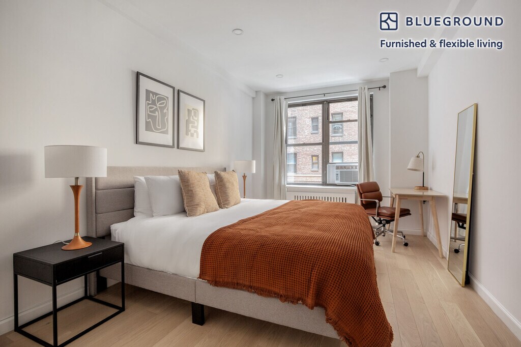 Show up and start living from day one in New York with this stylish two bedroom Blueground apartment. You’ll love coming home to this thoughtfully furnished, beautifully designed, and fully equipped Midtown East home. (ID #NYC1479) The advertised rate of $7,960/month is the lowest available price, based on a 1 month(s) and 17 day(s) stay with a move-in date of January 11, 2026. If you’re looking for a 1-year stay, the rate is $8,770/month. Rates vary depending on the duration of stay, season, and other parameters. For exact pricing and additional pricing components, please visit our website and enter your desired move-in and move-out dates. The rate is applicable when billed upfront; it can be higher if billed in multiple payments. Brokers are welcome to reach out. Were you looking for an unfurnished lease? Try Blueground instead and upgrade from unfurnished to furnished living: - Furnished at rates comparable to unfurnished - No setup or furniture costs - save thousands - Move-in ready - save time, just bring your suitcase Designed with you in mind Gorgeous furniture, fully equipped kitchen, smart TV, and a premium wireless speaker are just a few of the amenities you’ll find inside this two bedroom apartment. Ideally located in New York, you’ll find a lot to love outside as well. When you’re ready to relax, you’ll be happy to discover every Blueground bedroom comes with superior quality mattresses, luxury linens, and cozy towels. We handle everything so you can simply show up and start living. This apartment also offers in-apartment laundry. Sleeping arrangements King Bed, 70.8in/180cm Queen Bed, 63in/160cm Amenities Building amenities unique to this two bedroom apartment include an on-site: - Doorman - Dryer - Elevator - Washing machine - Pets allowed Arrival and ongoing support The entire apartment is yours to enjoy! Throughout your stay, you’ll have access to our Client Experience team through the Blueground App. You can schedule additional cleanings, submit maintenance requests, and view our neighborhood recommendations with just a few taps. We’ll share all details upon confirmation of your stay. Ideally Located This furnished apartment is located in Midtown East. This bustling neighborhood is home to NYC landmarks like the Empire State Building, the United Nations' headquarters, and Grand Central Station. Midtown East is also home to a thriving dining scene, with everything from humble food carts selling hotdogs to white-tablecloth restaurants with multiple Michelin stars. There are also many cultural attractions, including the Museum of Modern Art, the lovely Japan Society, the historic Morgan Library, and more. Midtown East is also home to some incredible shopping, from the international flagship stores along Fifth Avenue to Bloomingdale's, one of the city's best-loved department stores. Other things to note Building amenities may have an extra cost. This Blueground apartment has flexible lease options, allowing you to book it for one month, a year, or more. Pets are welcome, though weight limits and breed restrictions apply and may incur fees. Brokes CYOF. We take great pride in ensuring every photo displayed is shot in our own units with our actual furnishings. That said, we regularly refresh our decor and furniture arrangement, which may differ from what’s pictured. [SI]