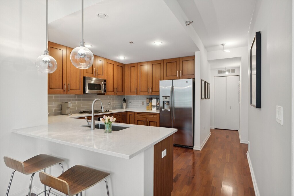 Available Immediately! Perfect for those who want to work from home as 2nd bedroom has built in desk and murphy bed. Extremely well maintained and well appointed. The spacious floorplan of 1400+ square feet is in the north east corner with views of the Chicago River as well as the City from floor to ceiling windows! The open kitchen features quartz counters,new backsplash,stainless appliances and large breakfast bar. A large balcony is accessed off the living room on the east side of the building for being able to grill,watch the city and enjoy the energy of the Streeterville area! The primary bedroom suite is generous in size and has a walk in closet with custom organizers. The spa-like bath has a separate marble shower and tub as well as double vanity. The 2nd bedroom is also very spacious and can be an office and bedroom/guest room depending on your needs. There is a beautiful custom built in desk as well as a queen-size murphy bed. The 2nd bath is accessed from both the 2nd bedroom as well as the hallway so it acts as an ensuite bedroom as well. Brand New In unit washer & dryer,hardwood floors,custom roller shades in windows with black out blinds in primary bedroom,professionally organized closets! So many luxury finishes in this home,you must just come and see it for yourself! Building amenities include: state of the art fitness center with newly-upgraded equipment; well-appointed hospitality room with full kitchen; wrap-around outdoor deck; assigned storage lockers,secure bike room,24-hour staffed building security and doorman. Garage parking space #716 is $250 additional in the private garage. Storage locker is #25. Rent includes: Heat,air (4 pipe system),water,gas cooking,cable and internet. MLS# MRD12490596 Based on information submitted to the MLS GRID as of [see last changed date above]. All data is obtained from various sources and may not have been verified by broker or MLS GRID. Supplied Open House Information is subject to change without notice. All information should be independently reviewed and verified for accuracy. Properties may or may not be listed by the office/agent presenting the information. Some IDX listings have been excluded from this website. Prices displayed on all Sold listings are the Last Known Listing Price and may not be the actual selling price.