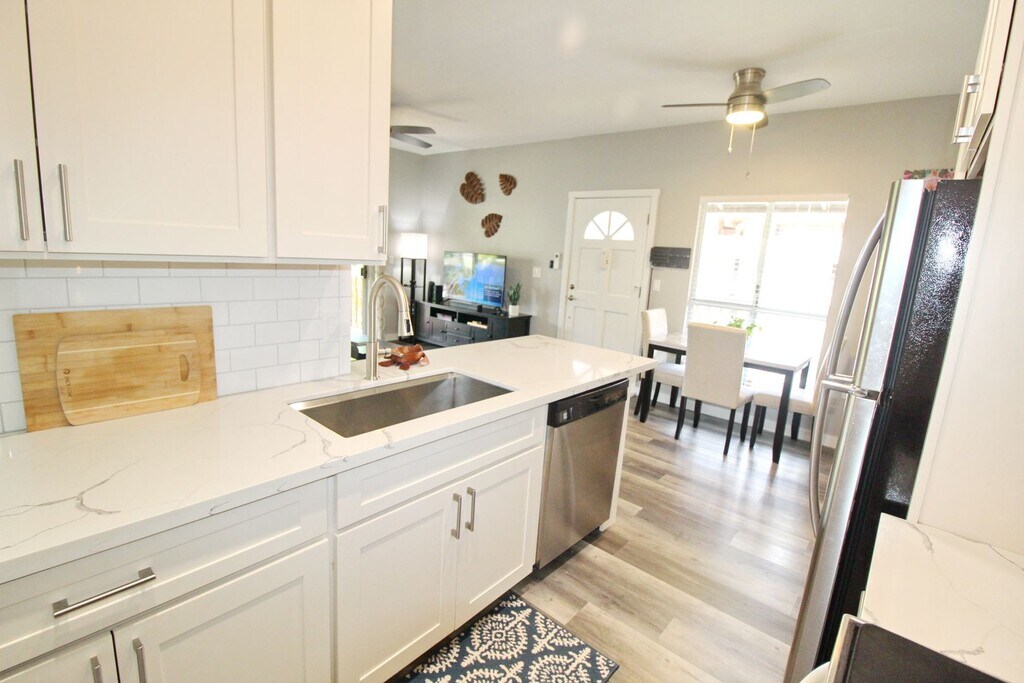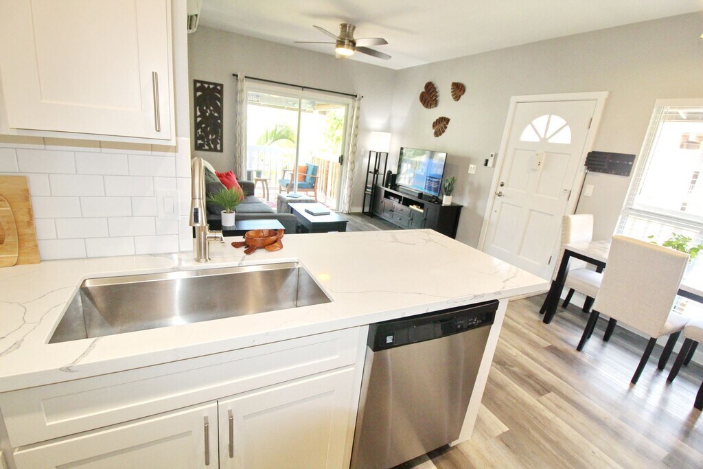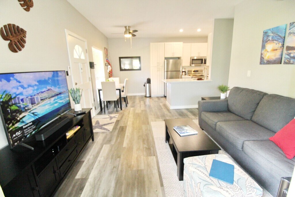 This 2 BR, 1.5 BA condo has had a full makeover from floor to ceiling with no detail left untouched all the way to the decorations. . The unit is has been updated with new split A/C units (3 total), ceiling fans, paint, beds, couch, dining room table, flat screen TV, new flooring throughout, stone countertops, cabinetry with soft close, stocked kitchen, light fixtures, updated bathrooms, new stainless steel appliances including a dishwasher, Extra large stainless sink with pull down faucet, stacked washer/dryer, and more. Private covered lanai with new outdoor furniture. Two parking spaces - one covered and one uncovered. Sheets and pillows are available upon request. Water, sewer, basic cable, pest control, internet & standard trash removal is included in the rent as provided by the HOA. Tenant responsible for all other utilities including obtaining and maintaining renters insurance. Keonekai Villages sits approximately 150 yards inland from the ocean, right above a friendly dog park and close to Kamole 3 beach park which is very popular for watching the sunset. Its very close to the South Maui boat ramp, shopping and dining opportunities in Kihei, and is only a few minutes away from accessing the the world class beach resorts found in Wailea and Makena. Complex has very well maintained tropical ground and has a community BBQ & picnic area. Available January 1st, 2026 for an 18 month only term through the end of June, 2027. Negotiable to rent it for a 12 month term with extension possibilities. Enjoy all that beautiful Maui has to offer. No pets please