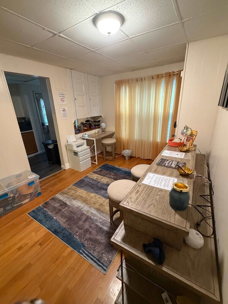 Feel at home in this beautifully remodeled and furnished 2-bedroom apartment in walkable Historic Eastwood/Syracuse, close to Upstate Hospital, Syracuse University, Destiny USA Mall, and downtown Syracuse. This apartment features a fully equipped kitchen with a stove, refrigerator, microwave, toaster, coffee maker, and Ninja smoothie maker. There are also two 55-inch TVs and one 65-inch TV, exercise equipment, hardwood flooring, a separate eating area, and a large living room area with a large sectional recliner and a 65-inch wall-mounted television. The apartment also includes a huge backyard with furnishings and a covered area. A separate large space is equipped with a printer and a work desk. The apartment is centrally located and is a 3-minute walk to Walgreens and a 5-minute walk from the bus stop. Conveniently located stores are a 5- to 10-minute walk from the apartment. The neighborhood is quiet, safe, and walkable, with an event center on the corner. Quiet hours are between 10:00 PM and 7:00 AM. Smoking and vaping are allowed outdoors only in the backyard or on the side of the house. Guests will be charged for any damage due to smoking or vaping in the apartment. [SI]