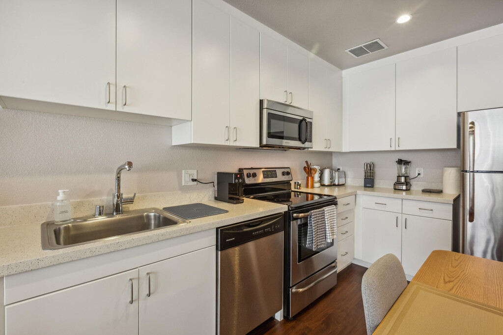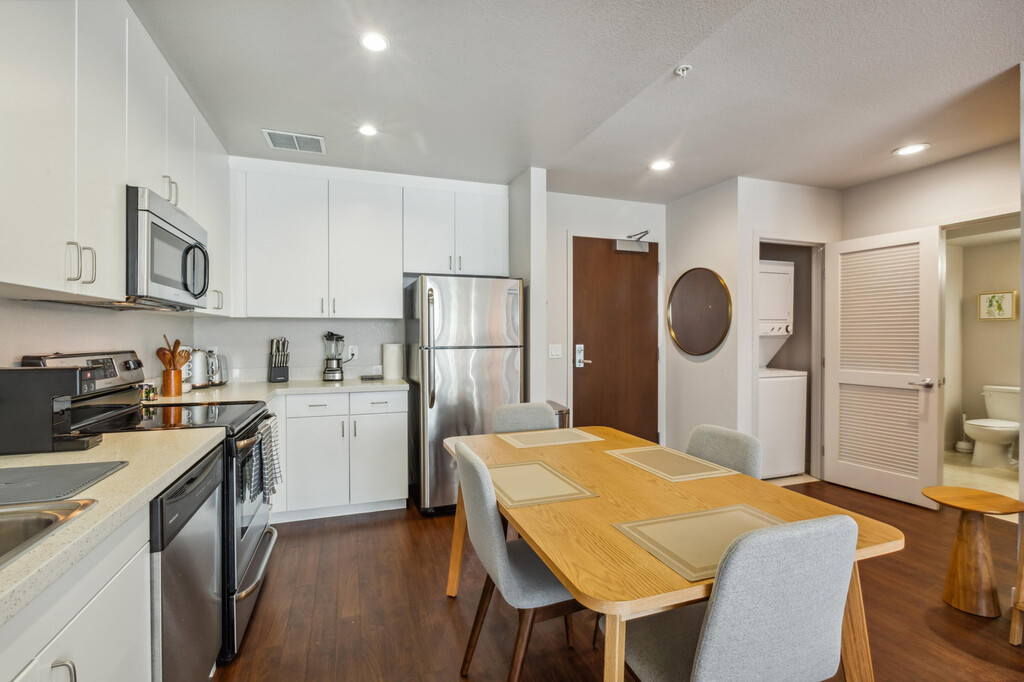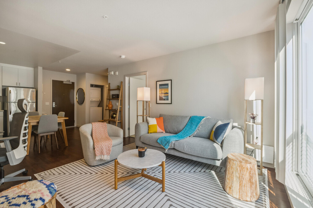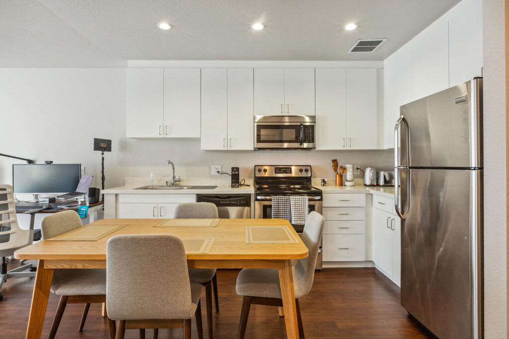 In the heart of The Mission District, this apartment at Vara Apartments offers convenient and stylish community living with modern amenities from an unparalleled location. Explore designer shopping, world-class cuisine, live music, and local favorites in the vibrant and bustling neighborhood just outside your door. Meet up with friends for a drink in the clubhouse, enjoy an evening on the deck with a BBQ dinner, or wake up for an early workout in the fitness center, all without leaving the property. This fully furnished, 1-bedroom apartment is custom designed for the remote worker looking for a comfortable and inspiring environment in which to be productive. The unit includes a fully equipped kitchen, full bathroom, king-size mattress, plenty of storage, smart TV, and all utilities. Most importantly, it features a full home office set-up with private high-speed internet that you won't find anywhere else. There is no air conditioning in this unit. Internet speeds are not guaranteed and may fluctuate based on your computer model and the router location. Secure garage parking is available upon request and subject to fees based on availability. Early check-in from 10am-3pm will incur a fee of $75 and before 10am will incur a fee of 1 full night's rent based on selected dates. Late check-out from 11am-3pm will incur a fee of $75 and after 3pm will incur a fee of 1 full night's rent based on selected dates. Late check-outs must be requested at least 48 hours in advance. Includes private high-speed internet, standing desk (Uplift), ergonomic work chair (Uplift), 34-inch ultra-wide monitor (Samsung), microphone (Blue Yeti), webcam (Logitech), computer speakers (Bose), LED streaming light, green screen, keyboard (Logitech), mouse (Logitech), laptop stand, and TOTU 16-in-1 Triple Display USB-C 3.1 Docking Station. A laptop computer is not included. [SI]