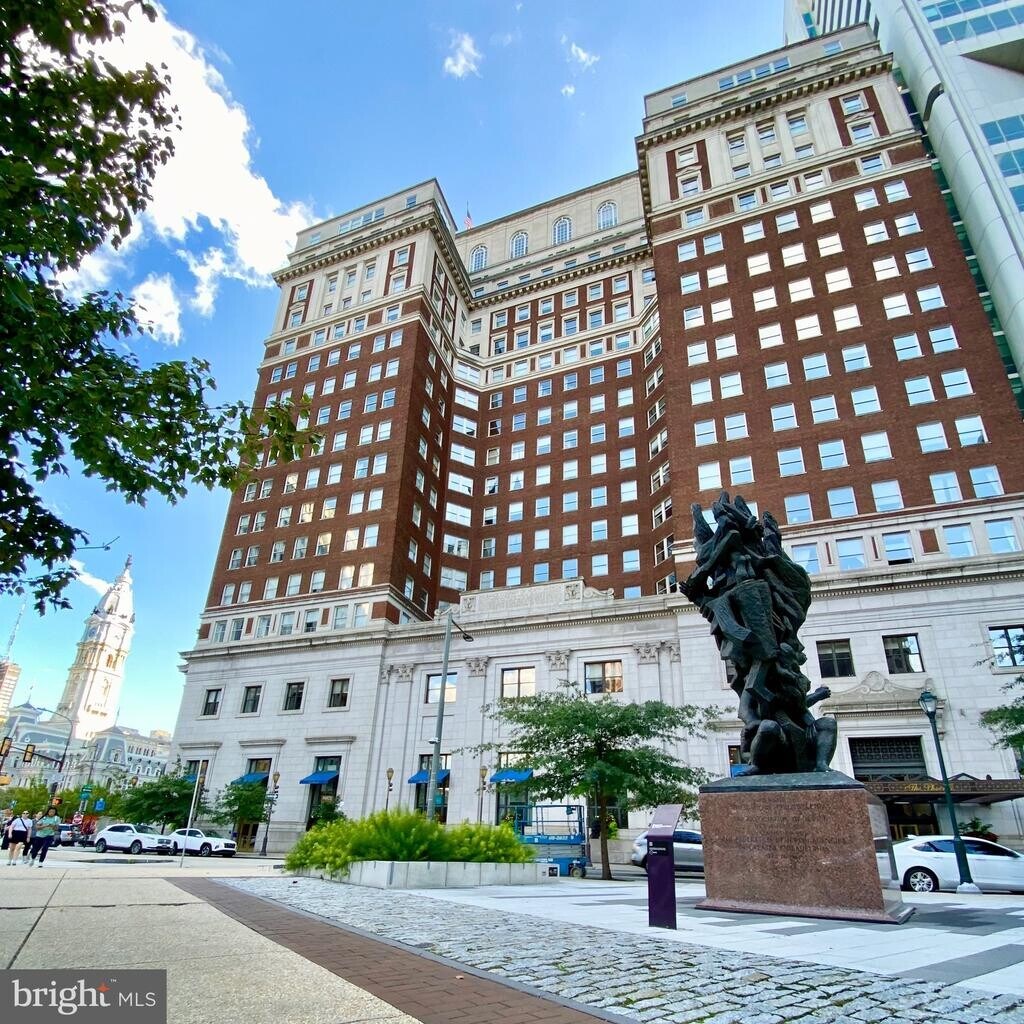 Step into sophistication at the iconic Phoenix Building in Logan Square, offering a large, bright, freshly painted one-bedroom, one-bath residence with high ceilings and brand-new flooring. Enter the elevator through ornate bronze paneled doors to arrive at a lavish shared seating area on the 8th floor, situated conveniently just outside your door. The elevated vantage point of this unit allows for breathtaking and expansive views of the Benjamin Franklin Parkway while maintaining a visual relationship with the vibrant urban environment below. Stainless appliances, copious cherry cabinets, a generous amount of granite counter space and a breakfast bar make the gourmet kitchen ideal for culinary creativity and entertaining. A pantry off the kitchen houses a full-size washer and dryer and additional storage. The contemporary bathroom is equipped with ceramic tile and a granite vanity. The bedroom is spacious and light-filled with three large windows and ample closet space. The Pheonix offers exceptional amenities including a state-of-the-art fitness center and additional weightroom, conference center with attached service kitchen, media room, and the stunning Phoenix Club Room. To top it off, head up to the expansive and beautifully adorned rooftop terrace, presenting panoramic city views to the east toward Love Park. Enjoy complimentary wifi throughout all of the common areas. Ease into peace of mind and convenience with a 24-hour doorman and concierge service. Indulge in a night out at the full-service restaurant and bar without leaving the building. Convenient to all major forms of transportation with direct resident elevator access to the Suburban Station concourse, easy access to I-95 and I-76, and close proximity to the Philadelphia Airport. A stone’s throw from City Hall, the Phoenix is quite literally at the center of it all with respect to walkability. Vibrant nightlife, world-class restaurants, trendy cafes, upscale shopping, beautiful parks, universities, renowned museums and cultural attractions, all at your fingertips while you bask in tranquility from above. Ideal for those seeking a long-term commitment to refined living. Welcome to the lap of luxury. Welcome Home.