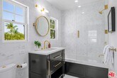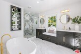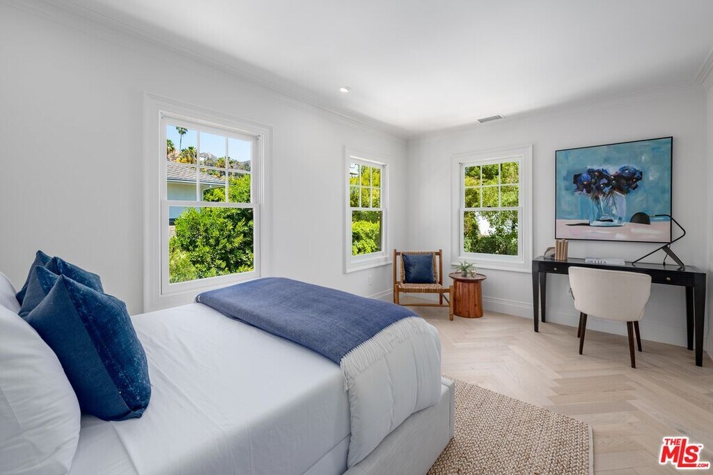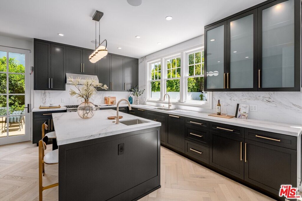 Restored, extensively renovated, walled and gated 1920's Colonial in Sunset Square with 4 bedrooms, 5 baths, and large pool. The property features a formal entry, light oak herringbone floors, custom marble fireplace, large dining room, chef's kitchen with extensive island, premium appliances, double sinks, double dishwashers, and the finest fixtures. A separate breakfast room opens to custom family/media room. A wine chamber is downstairs. Upstairs a dramatic glass and steel atrium leads to 3 bedroom suites including primary suite which expands across the entire south side of the house with private terrace, large custom closet, freestanding and double vanities The outdoor areas are distinctly landscaped, with over-sized pool, outdoor kitchen/BBQ, formal dining area, and spacious play area. And finally a one-bedroom, one bath guest house with fully-equipped designer kitchen. Perfect for a work-from-home office, music studio or creative space. MLS# 25594587