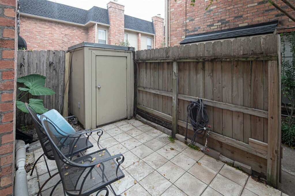 Light and bright,downstairs,corner unit. Your new home in the beautiful gated community of River Oaks Gardens surrounded by lush grounds and old oak trees. Just steps away from the River Oaks Shopping center. This unit has beautiful hardwood floors throughout with tile in kitchen and bath. Walk in shower. Full size washer and dryer. Private spacious fenced patio with large storage closet. Valet trash pickup outside your door 3 days a week. 24/7 courtesy officers. Covered reserved parking. Beautiful community pool. Easy access to Buffalo Bayou Hike & Bike trail. A must see in a great location!! MLS# 91720495