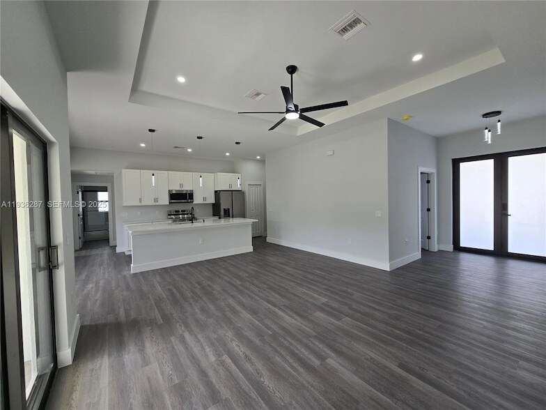 NEW CONSTRUCTION. RENT TO OWN PROGRAM AVAILABLE. FIRST RESPONDERS PROGRAM AVAILABLE. NO HOA. NO FLOOD ZONE. Spacious and modern open concept floor plan with 4 bedrooms, 2 bathrooms, and 2-car garage. This home features 10' ceilings, coffer ceilings, tile flooring throughout, quartz counter tops, soft close cabinets, stainless steel appliances, pantry, large bedrooms, his and hers walk-in closets, ceiling fans in every room, utility room. Huge covered patio with connections for your outdoor kitchen. Plenty of room for a pool. Upgrades include high-impact windows and doors, LED lighting fixtures, and energy-efficient appliances.
