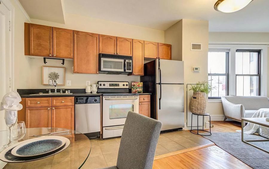 Welcome to Unit 104 at 1613 Harvard Street NW, a furnished studio-style one bedroom located in a well-maintained, professionally managed building in Northwest DC. This home offers a smart layout, comfortable design, and an ideal location for someone seeking convenience, walkability, and ease of living. Living and Sleeping Area - The living and sleeping space is designed as a combined studio-style layout with a drop-down Murphy bed, allowing the room to function as a living area during the day and a comfortable sleeping space at night. Kitchen and Storage - The apartment features a separate kitchen with stainless steel appliances and ample cabinet space, making it well suited for everyday cooking and storage. A spacious closet provides excellent additional storage and helps keep the living area uncluttered. Bathroom - The bathroom is generously sized and includes a full tub, offering comfort and practicality that is often hard to find in studio-style apartments. Building Features - First-floor unit Fitness room located one level below Large shared laundry room with new coin-operated machines that also accept credit cards Professionally managed, well-maintained building Neighborhood and Location - The building is ideally situated at the intersection of Mount Pleasant, Adams Morgan, and Columbia Heights. Bus lines running along 16th Street stop just outside the building and provide easy access throughout the city. The Columbia Heights Metro station on the Green and Yellow lines is approximately an eight-minute walk away. The National Zoo, neighborhood restaurants, grocery stores, and everyday conveniences are all within close walking distance. This location works especially well for professionals commuting downtown or to nearby federal agencies and international organizations. Lease Terms - Rent is $1800 per month with a $175 Amenity Fee. Tenant covers utilities and internet. The minimum lease term is one year, with the option to renew. This is a professionally managed property, and maintenance requests are handled promptly to ensure a smooth and reliable living experience.