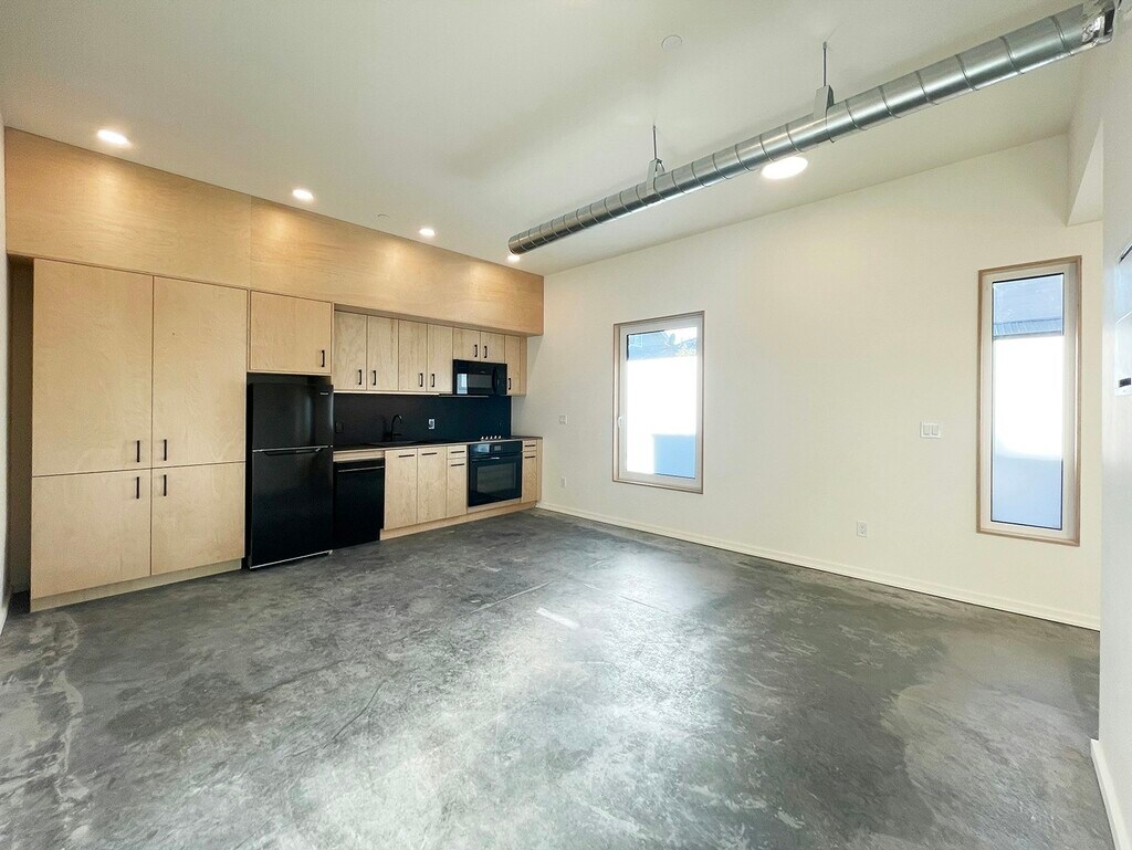 BRAND NEW open 1-bedroom available now featuring 10-foot tall ceilings, polished concrete floors, exposed ductwork and hand-built cabinetry. Live your best loft life in style and comfort in Tacoma's first and only Passive House apartments. This eco-conscious apartment delivers modern comfort and convenience packaged with stunning design and features you will love: beautiful built-ins, natural and non-toxic materials, on-demand hot water, keyless entry, and in-unit laundry. You can count on a tiny electricity bill and a healthy, quiet, and comfortable indoor environment thanks to triple pane windows and individual control of your high-efficiency heating, air conditioning, and filtered fresh air ventilation system. The 500-sf unit sneaks in a surprising amount of storage. Space-saving built-in wardrobe closets provide a total of 5 feet of hanging space and 6 drawers. Even the bathroom has tons of storage surrounding the laundry. A well-appointed kitchen comes with a full-size refrigerator/freezer, dishwasher, microwave, cooktop, and built-in oven and features an enormous built-in pantry. Frosted window film and floor-to-ceiling wool curtains optimally balance natural light and privacy at the generously sized west-facing windows. This ground-level unit is Type B Accessible with a barrier-free threshold, wide doorways, and a large bathroom with side-by-side washer and dryer. As a part of the Nocturne community, you will have access to our private courtyard, co-working space, and secure bike room with complementary e-bike charging. Nocturne is a pet friendly and smoke-free building. Vehicle parking with Level 2 EV charging available for $90/month in access-controlled garages. Safe biking, walking and transit routes also make the many popular destinations of the 6th Ave, Hilltop, Stadium, Downtown, and Proctor business districts accessible without a car. See nocturnetacoma dot com for application process and rental criteria. Pet Policy: First pet stays free, multiple pets negotiable (+$30/month per additional pet) - No Pet Deposit Smoke-free Policy: Smoking and vaping strictly prohibited Reusable screening reports: Not accepted