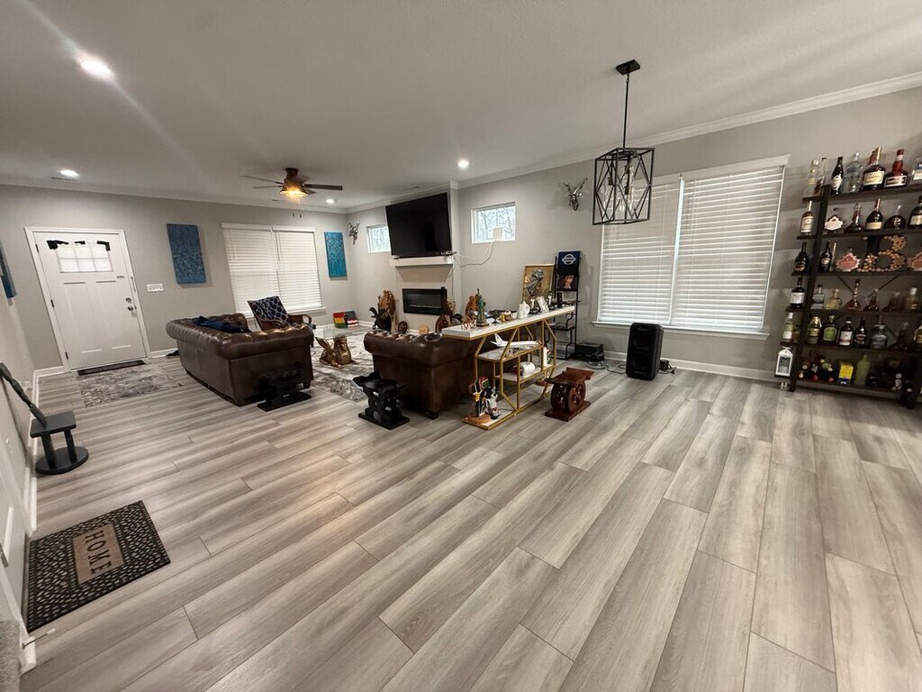 A beautiful and meticulous 5 bdrm / 3.5 bath home and it's amazing floor plan. This gorgeous home has a lg dining room & luxurious kit w/granite countertops, ss app and white soft-close cabinets. Get cozy in the family room w/ the ambiance of a warming fireplace. Rest comfortably in the primary bdrm w/a fireplace & spacious bath w/dual vanities & soaking tub & walk in closet. The first floors has a full bedroom with bath. Two additional large bdrms and a Finished Room Over the Garage. Want more? How about a laundry room and a 2-car garage a large deck over looking a wooded scenery. Commute w/ convenience to I-64, health care, childcare and SCHOOLS OF ALL AGES. Come see this home. Did we mention it's also pet friendly? Available by April1,2026.