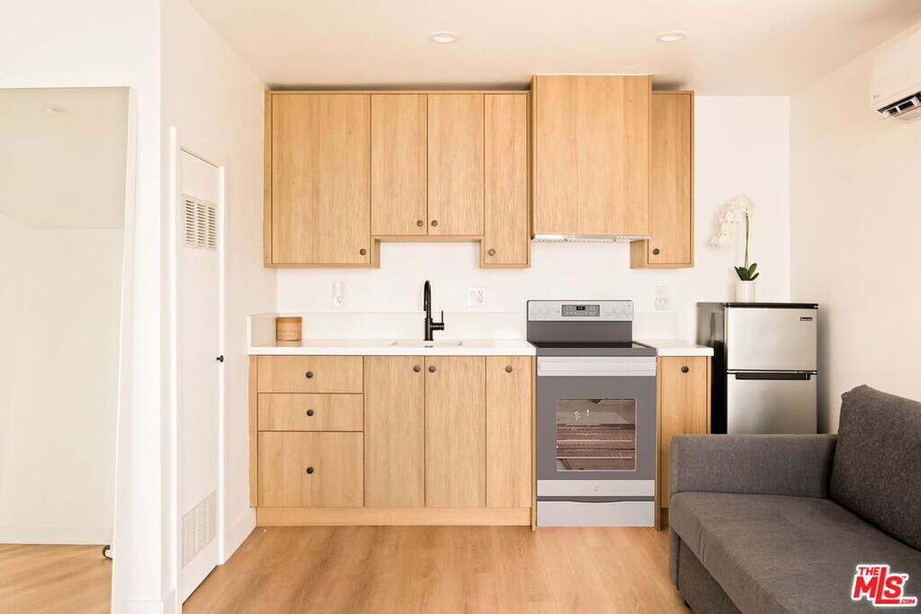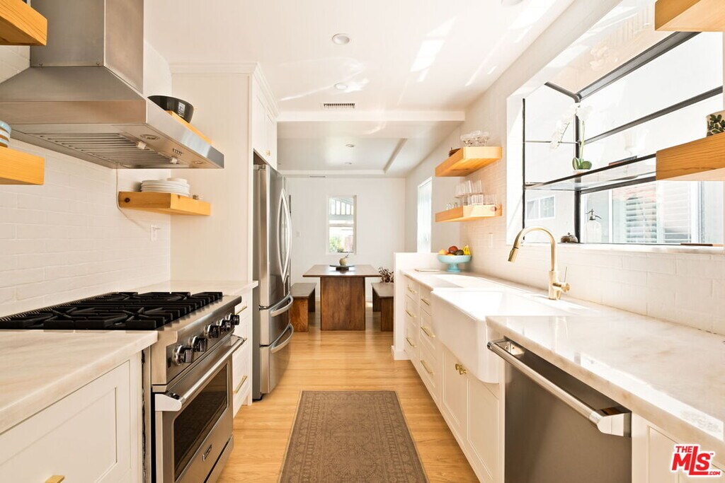 Tucked along a serene tree-lined stretch on Crescent Heights Blvd, this Beverlywood-adjacent, exquisitely remodeled home combines timeless character with high-end upgrades. The inviting living room features cathedral ceilings, fireplace, and beautifully maintained original hardwood floors. A gourmet kitchen showcases Italian marble countertops, Viking appliances, and a charming bay window that floods the room with natural light. In addition to the main residence is a spectacular fully permitted ADU with its own address and entrance. Completed in 2024, this stylish and versatile space offers a kitchen with gas hookups, bathroom, and mini-split HVAC; perfect for guests, a home office, or income potential. Outside, a backyard oasis awaits with mature greenery, including an orange tree, and privately gated parking for two side-by-side vehicles. A centrally located jewel that combines effortless access to Beverly Hills, Century City, Culver City, and all the dining and shopping the Westside has to offer. For showings, please call/text Laura: . MLS# 25610071