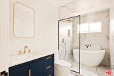 Tucked along a serene tree-lined stretch on Crescent Heights Blvd, this Beverlywood-adjacent, exquisitely remodeled home combines timeless character with high-end upgrades. The inviting living room features cathedral ceilings, fireplace, and beautifully maintained original hardwood floors. A gourmet kitchen showcases Italian marble countertops, Viking appliances, and a charming bay window that floods the room with natural light. In addition to the main residence is a spectacular new stylish ADU with a kitchen, bathroom, heat/air, with its own entrance, ideal if you work from home or have guests over. Outside, a backyard oasis awaits with mature greenery, including an orange tree, and privately gated parking for two side-by-side vehicles. A centrally located jewel that combines effortless access to Beverly Hills, Century City, Culver City, and all the dining and shopping the Westside has to offer. Not rented furnished. Gardner Included. Utilities not included.