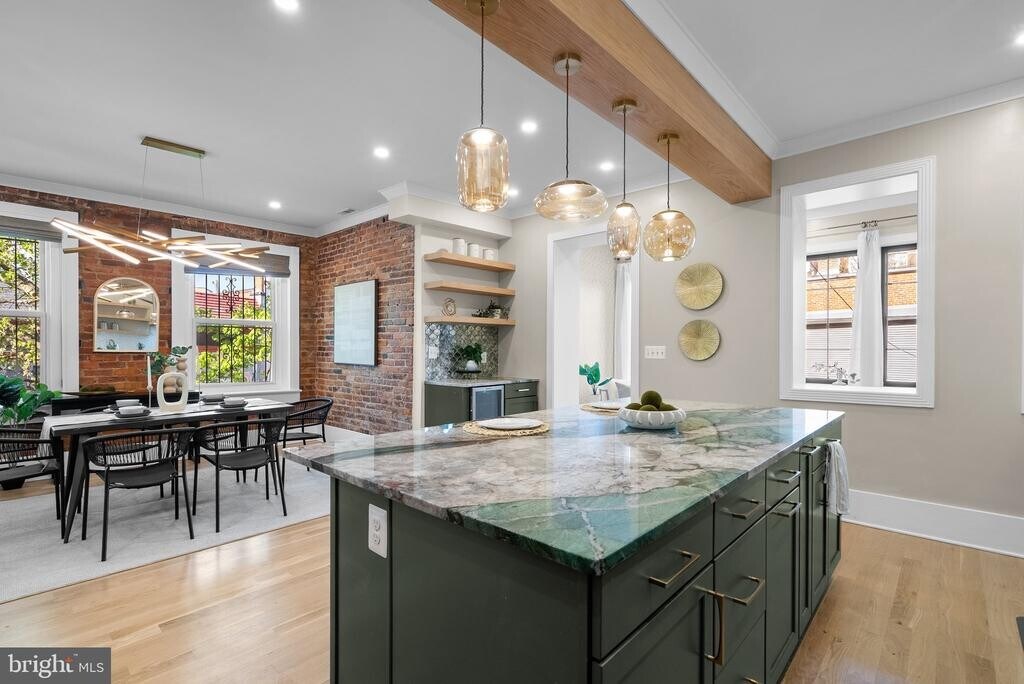 David GoldbergThis stunning 7-bedroom, 3.5-bathroom home spans four floors, offering ample space and comfort. The house boasts updated bathrooms, a wine fridge, and a gorgeous kitchen remodel that will inspire your inner chef. The kitchen features special granite countertops that perfectly match the cabinets, sleek SAMSUNG Custom appliances, and custom lighting, creating a sophisticated and inviting atmosphere. The home also provides access to a rear deck, perfect for outdoor entertaining or simply enjoying a peaceful moment. For your peace of mind, the property includes a secure driveway door and replacement windows. Experience the perfect blend of elegance and convenience in this remarkable DC home. Options to rent upper & lower levels separately too.Expanded Summary: Discover an extraordinary four-level residence nestled in the heart of historic and vibrant Mount Pleasant offering panoramic views of the iconic National Cathedral. Renovated in 2024, this stunning seven-bedroom home seamlessly blends timeless architectural charm with modern luxury and smart design. Thoughtfully reimagined by a professional design team, the home boasts extensive structural enhancements including reinforced joists, custom-engineered support systems, and modernized framing all fully permitted and executed with precision. Behind the scenes, brand-new electrical, plumbing, and dual-zone HVAC systems provide long-term comfort and energy efficiency. Inside, designer-curated finishes, from two custom kitchens with quartzite and marble countertops to spa-inspired bathrooms and built-in smart home features. Rich details like exposed brick, floating shelves, custom built-ins, and wood slat accent walls add warmth and character throughout. The main level offers an ideal blend of elegance and functionality with a dining area, a sun-drenched kitchen-side sunroom, and a cozy living room that opens to a covered porch perfect for morning coffee or evening relaxation. The second level features two spacious bedrooms including a primary suite with a large private sitting room and a convenient laundry room. The third level offers three additional bedrooms and a full bath, ideal for family or guests. The lower level is a full in-law suite or potential rental unit complete with its own entrance, two bedrooms, a full kitchen, a modern bath, a large living area, and exposed brick detailing that honors the home s original character. It s a perfect space for multi-generational living, an au pair suite, or rental income to offset your mortgage. Enjoy a brand-new rear deck, restored masonry, waterproofed exterior, and private off-street parking with a roll-up garage door. Located just blocks from Columbia Heights Metro, and steps to Rock Creek Park and the National Zoo, this home offers the perfect balance of urban convenience and outdoor serenity. Enjoy walkable access to Mount Pleasant and Columbia Heights best dining, shopping, and local attractions.