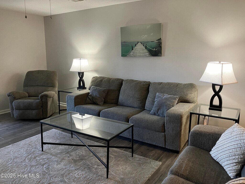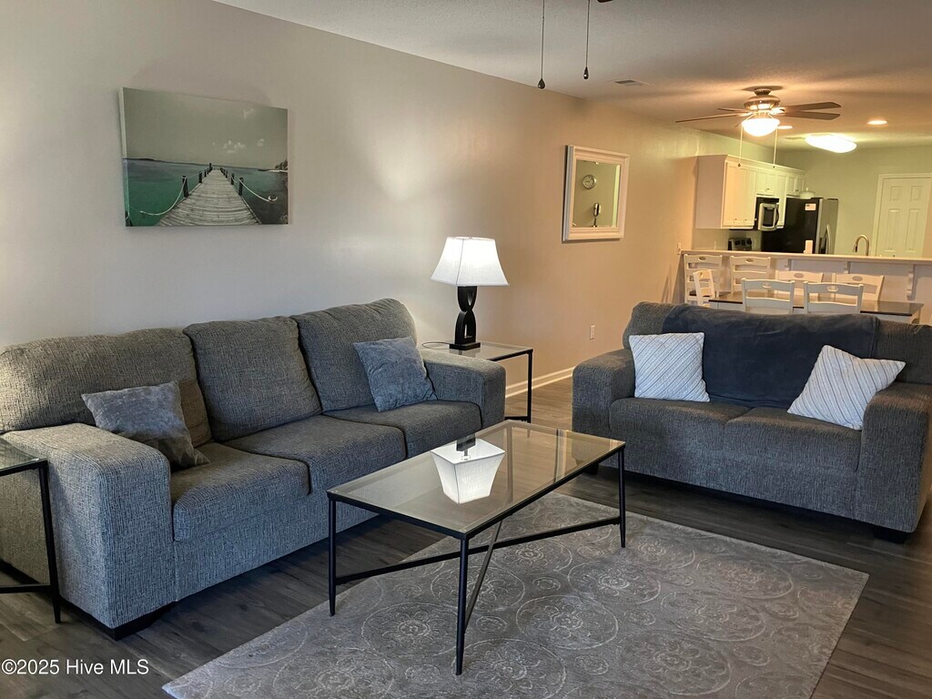 This unit has a great flow with an open and spacious floor plan. The kitchen is towards the front of the condo and is fully equipped with stainless steel appliances and plenty of counter space. It has a raised bar for your dining needs. Bedroom 1 is located across from the kitchen and has two twin-sized beds and a dresser. The living room is located towards the back of the condo along with the master bedroom. The master bedroom has a Queen size bed, dresser, and tv. There is a nice seating area on the screened-in back porch which overlooks the golf course. Amenities within walking distance include Carolina National Golf Course, pool, tennis and boccie courts, and fitness center. There is also key access to the Beach Clubhouse w/pool and River House Marina. Small Dogs only with application and non-refundable pet fee. No SMOKING. Application fees apply.