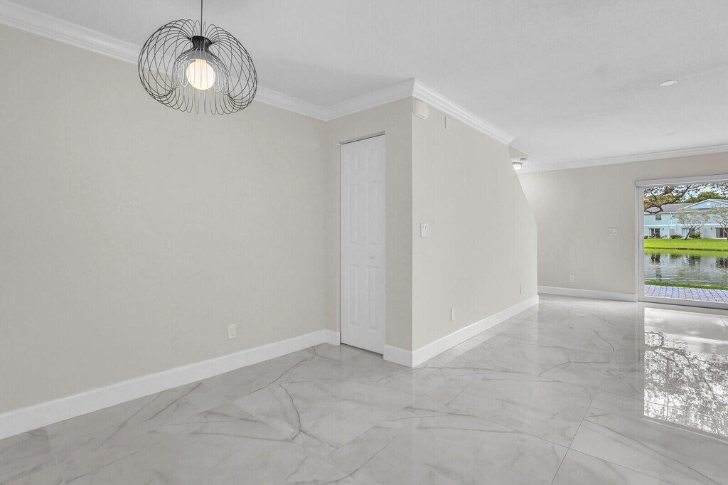 Welcome home to this beautifully renovated 3BR/ 2.5BA townhome showcasing serene lake views, modern finishes, hurricane-impact windows/doors, custom closets, 1-car garage & in-unit laundry. The open kitchen boasts quartz counters, stainless appliances & tons of cabinet space. Stunning porcelain floors throughout the 1st floor, crown molding & contemporary light fixtures give this place the feeling of home you've been looking for. 1/2 bath located on the 1st floor for convenience. Upstairs find three generously sized bedrooms with a split floor plan & two bathrooms. Conveniently located in Delray Beach's Sierra Palms, this gated community is close to top-rated schools, hospitals, shopping & dining. Community amenities include a recently updated pool, playground, gazebo & outdoor fireplace.